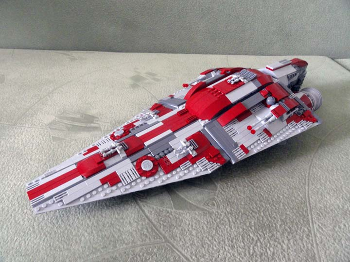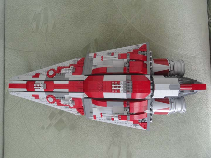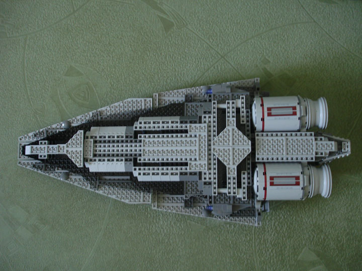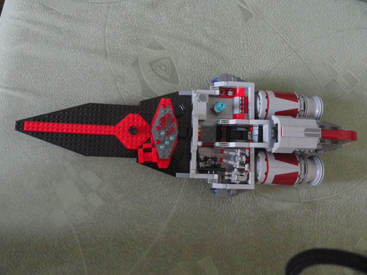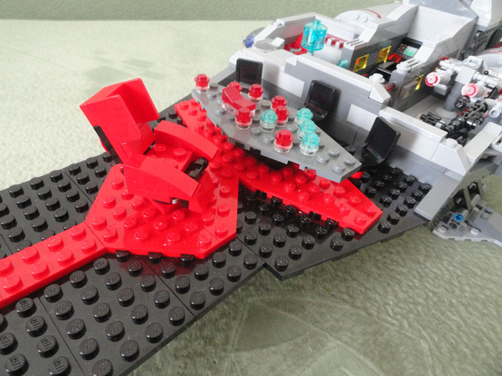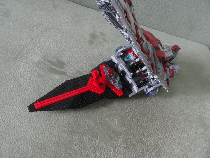Модель выполнена в смешанном масштабе: внутренние части корабля (зал императора, центр управления боевыми действиями, оружейная, центральный блок управления кораблем и зал связи), ангар и спидер выполнены в масштабе минифигурки.