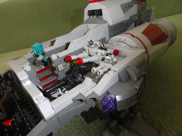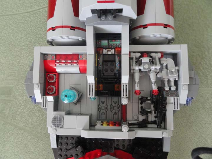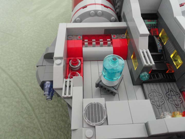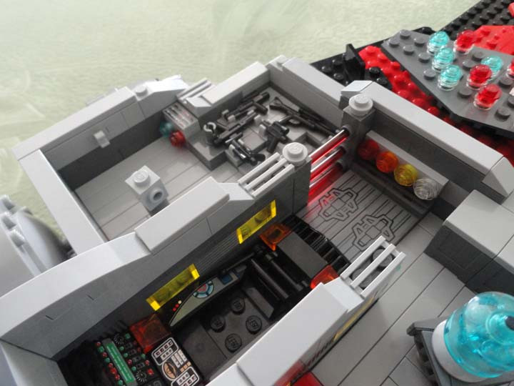 Кроме того, мне понравилось, что помимо корабля реализованы и такие мелочи, как техника и оружие. Особенно порадовал спидер, так же наличие ангара с истебителем/бомбардировщиком/просто легким кораблем .