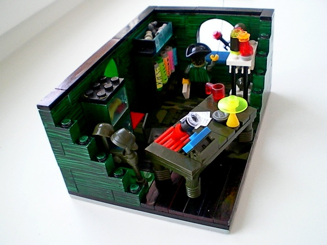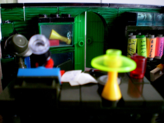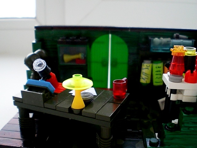 LEGO MOC - Because we can! - 'Воздушный змей Бенджамина Франклина': Рабочее место ученого. Записи, чернила с пером, микроскоп, изобретенный впервые еще в 1590 году...