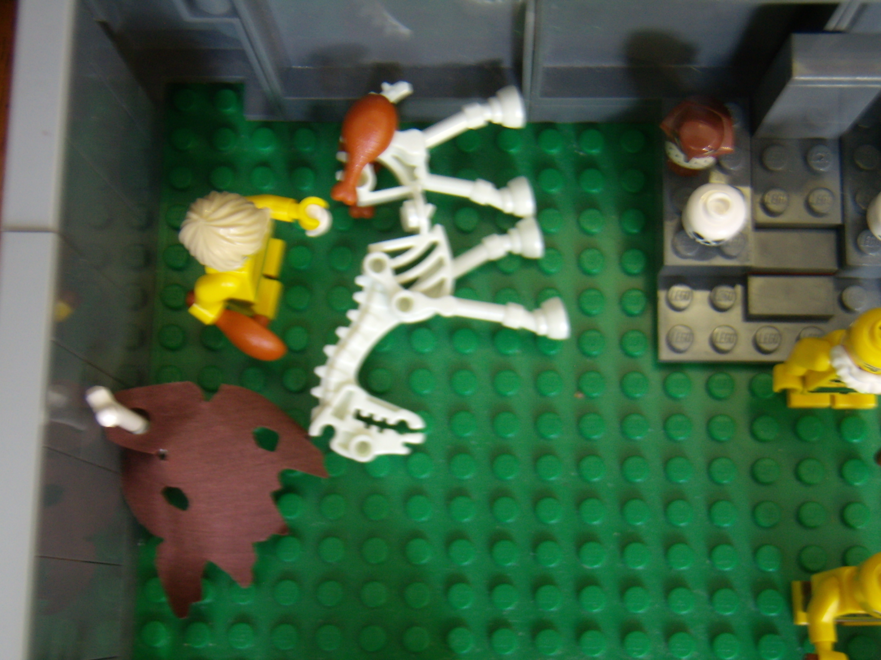 LEGO MOC - Because we can! - Caveman fire discovery: Разделка лошади к обеду, шкура лошади уже украшает стену (вид сверху).