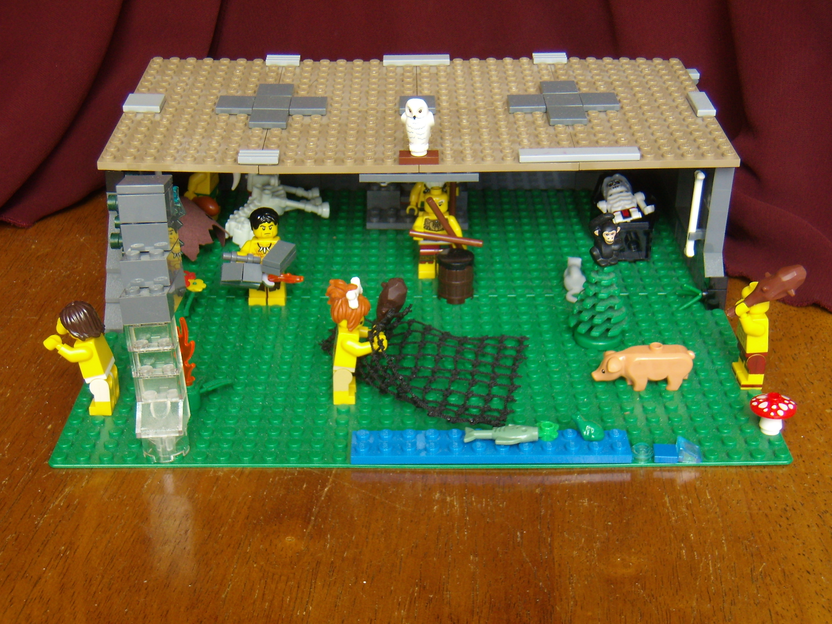 LEGO MOC - Because we can! - Caveman fire discovery: Вид на пещеру древних людей сверху.