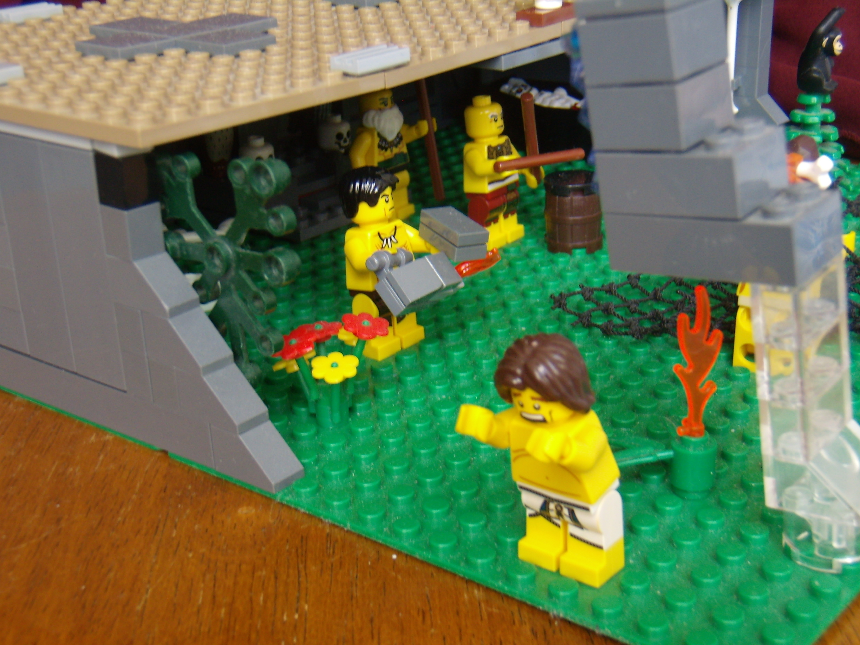 LEGO MOC - Because we can! - Caveman fire discovery: Вид на пещеру сбоку, более крупный план.