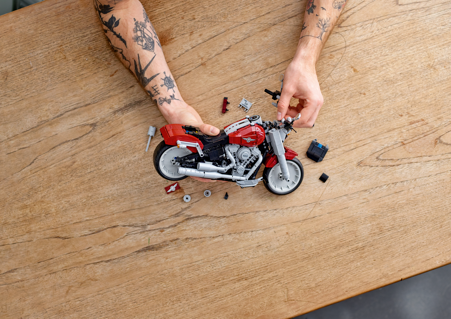 | 1 X Tile 2 x 4 with Silver Harley-Davidson Logo Pattern Model Left Side | Dark Red |   |  |