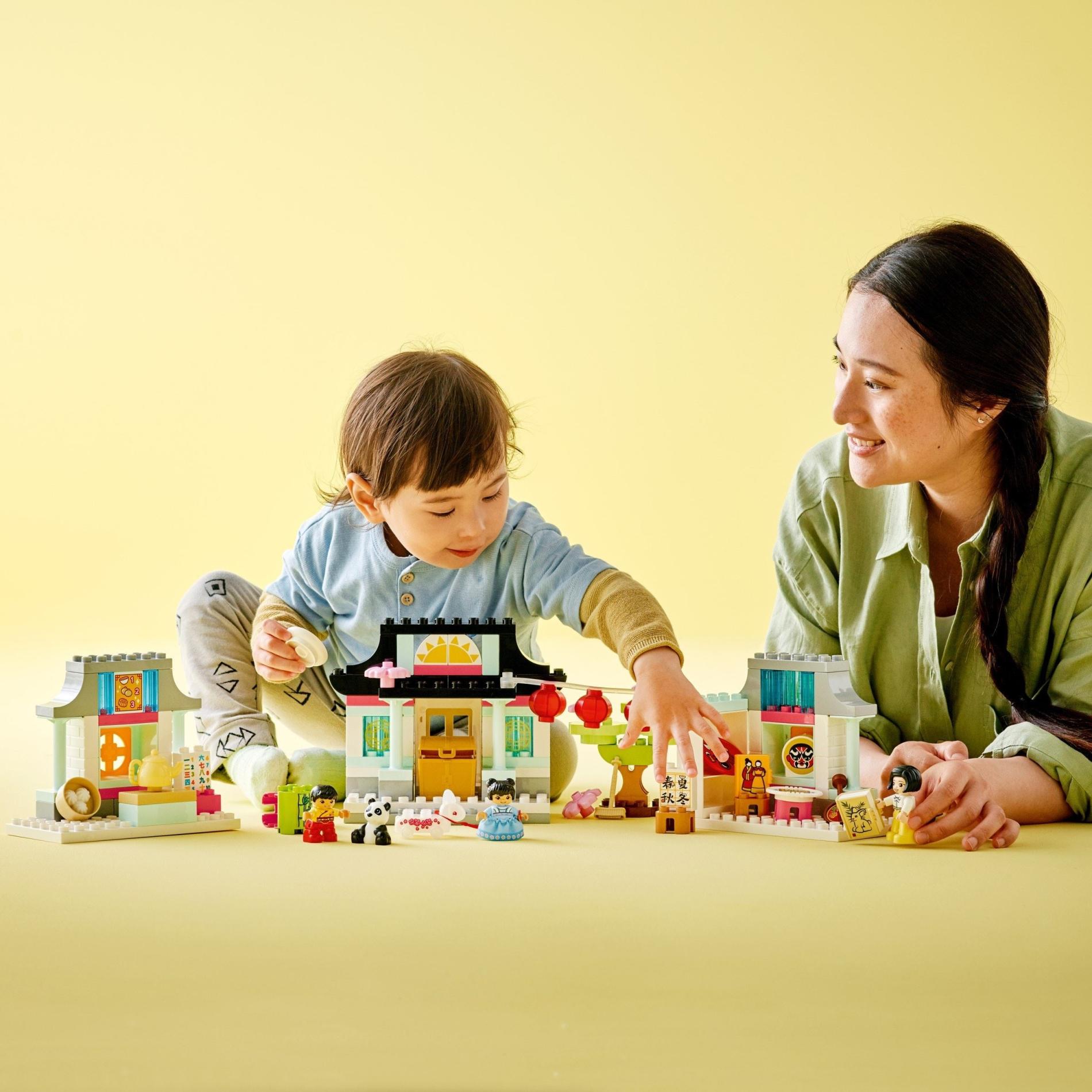 | 1 X Duplo, Brick 1 x 2 x 2 with Bottom Tube with Menu with Bowl, Tan Onions, Moon Cake, and Bright Pink Numbers 1, 2, and 3 on Bright Light Orange Background Pattern | Light Aqua |   |  |