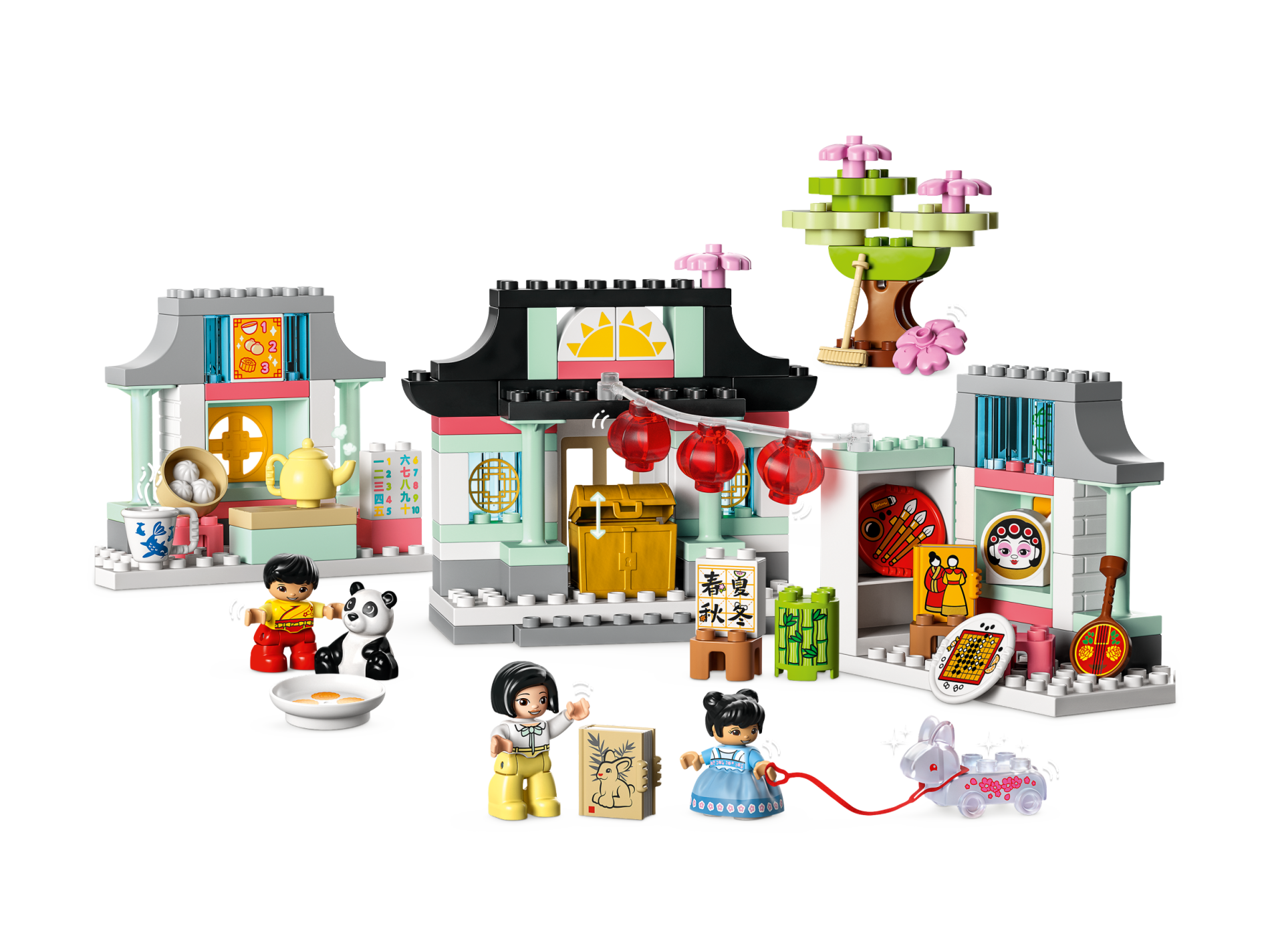 | 1 X Duplo, Brick 1 x 2 x 2 with Bottom Tube with Coral, Dark Turquoise, Lime, Medium Azure, and Yellow Chinese Logograms and Numbers 1, 2, 3, 4, 5, 6, 7, 8, 9, and 10 Pattern | White |   |  |