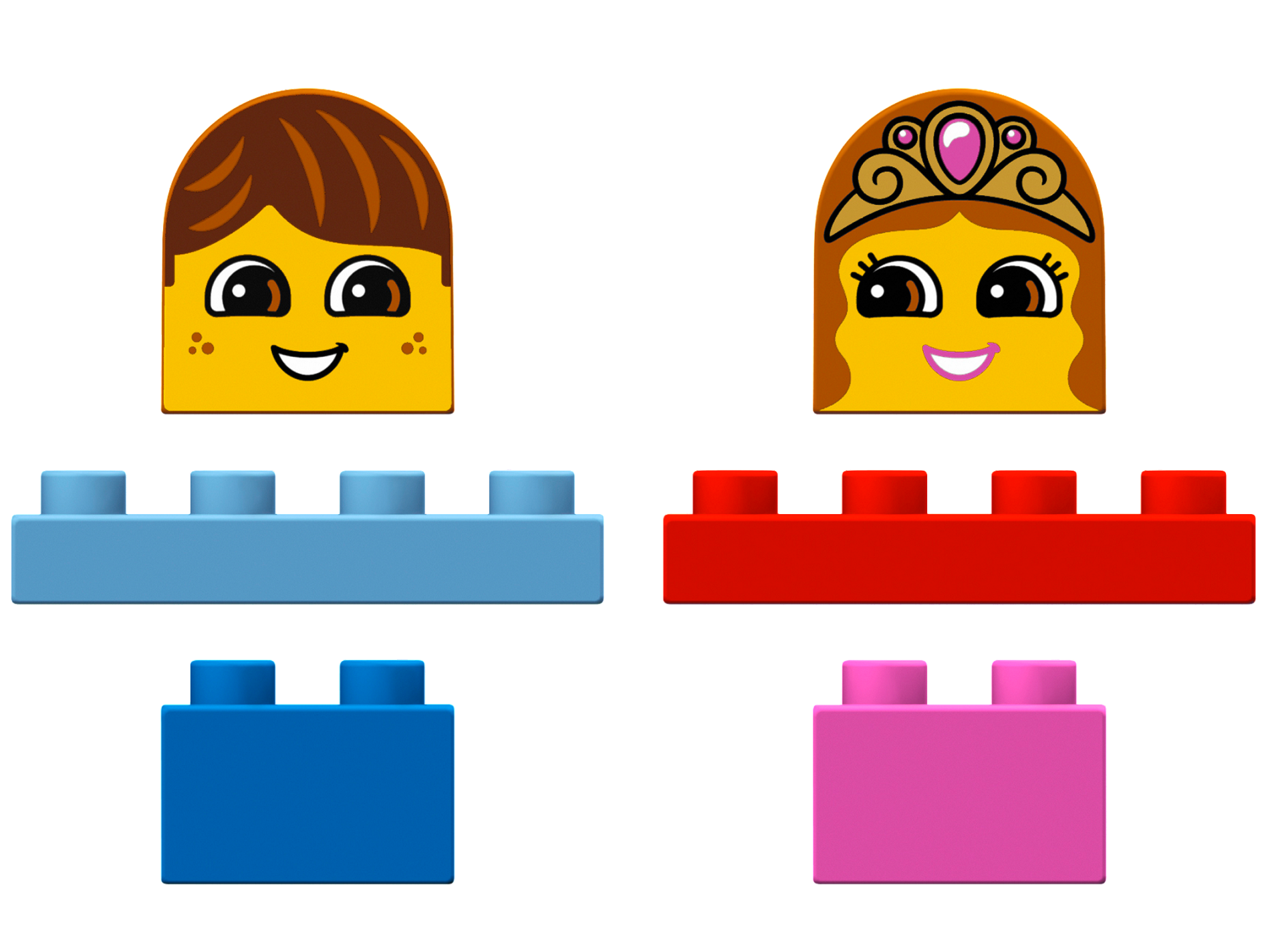 | 1 X Duplo, Brick 2 x 2 x 2 Curved Top with Girl Face, Open Smile, Crown with Jewel Pattern | Dark Orange |   |  |
