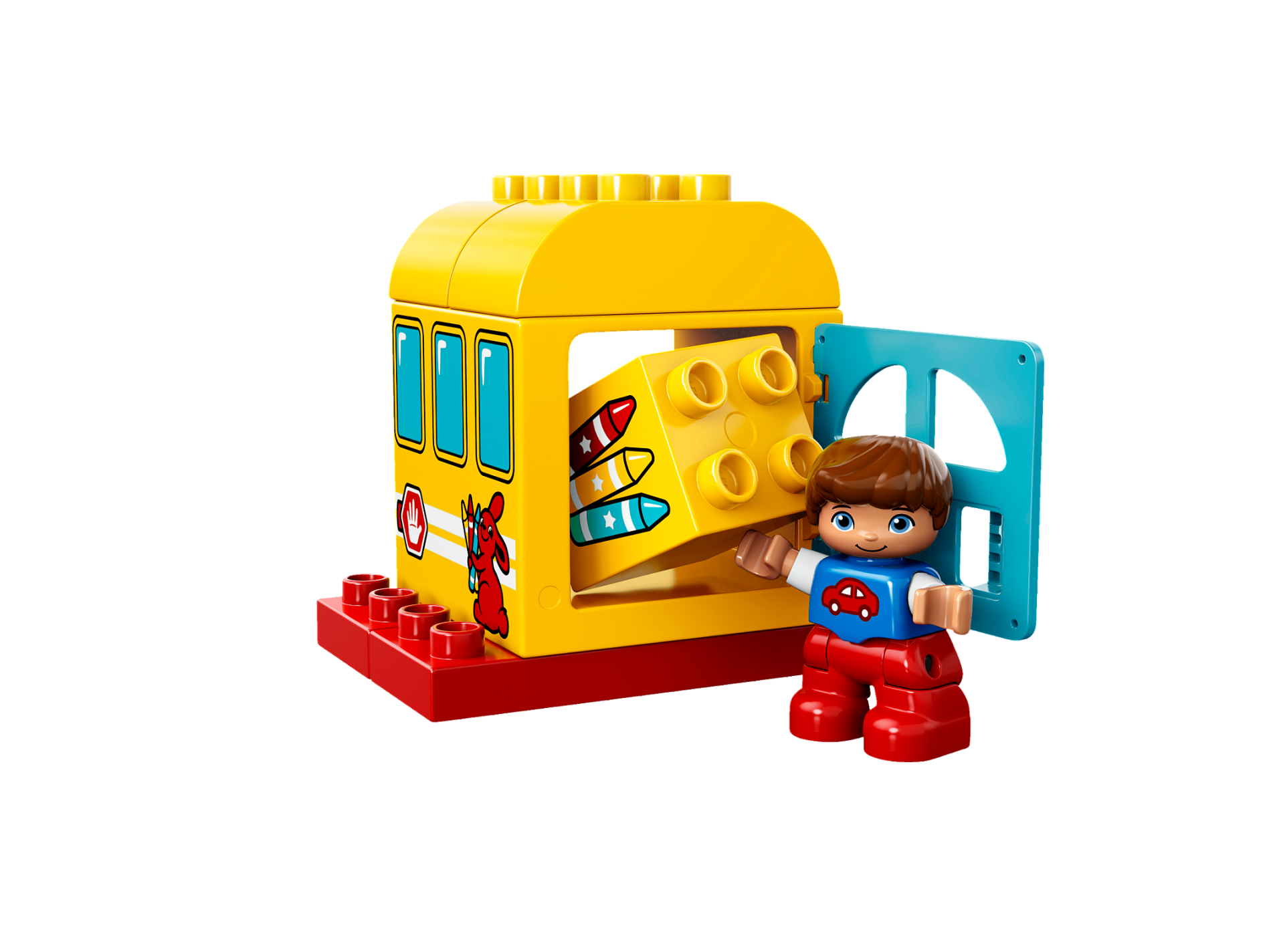 | 1 X Duplo Building Door Frame 4 x 4 x 3 - Thin Top with Windows, Bunny Rabbit Holding Crayons, Stop Sign and Horn Pattern on Both Sides | Yellow |   |  |