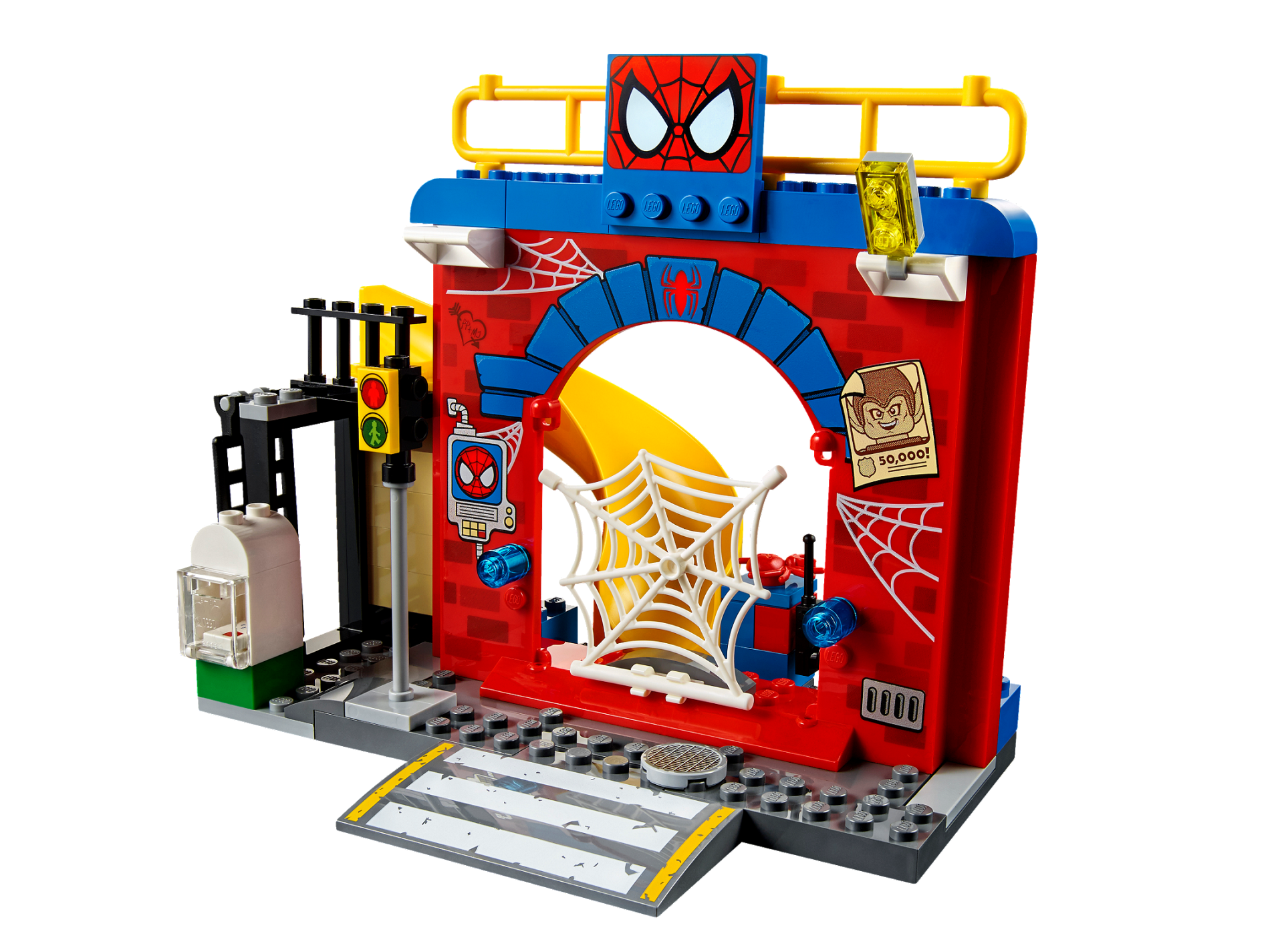 | 1 X Tile, Modified 4 x 4 with Studs on Edge with Spider-Man Eyes Pattern (10687) | Blue |   |  |