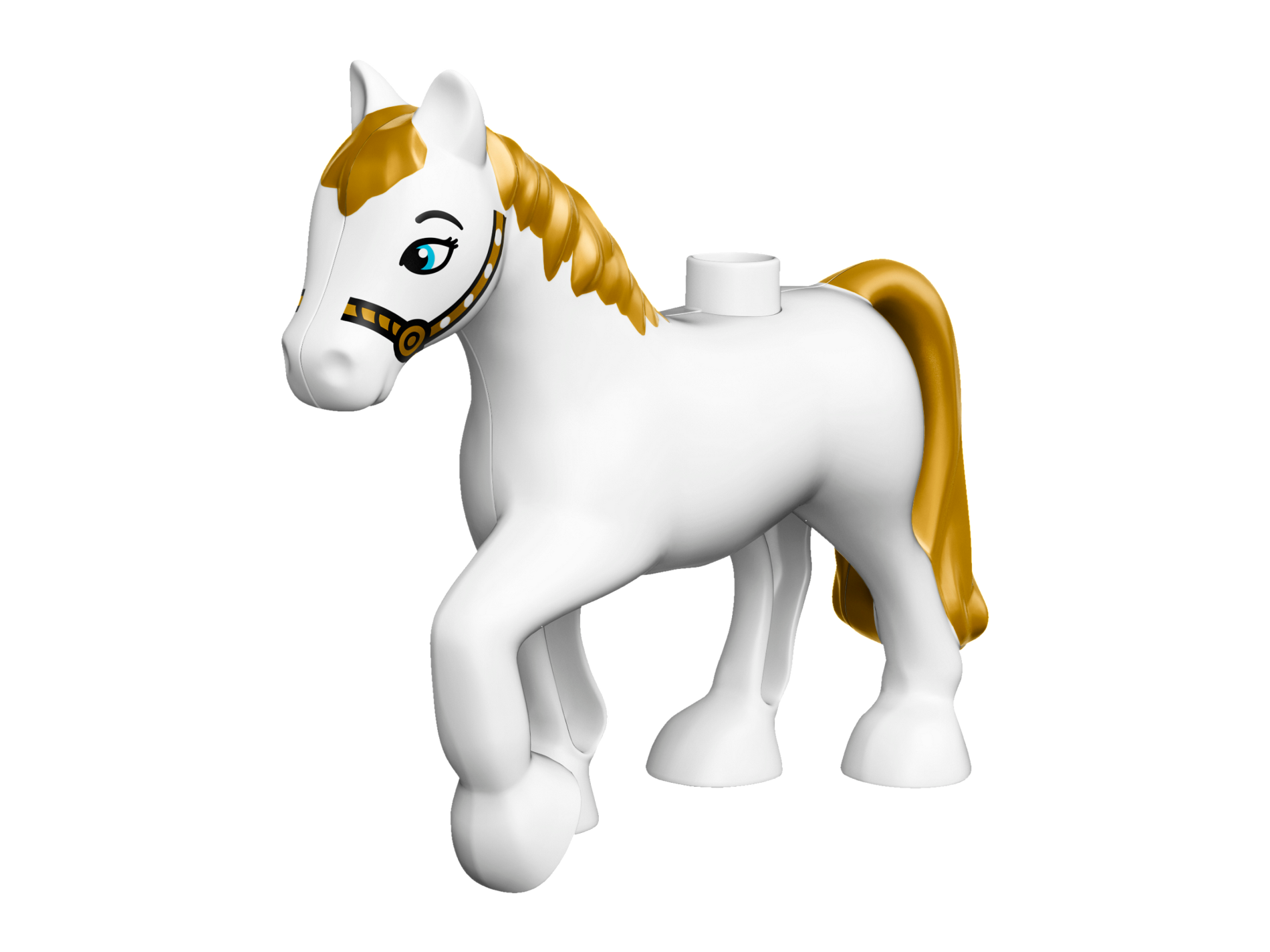 | 1 X Duplo Horse with one Stud and Raised Hoof with Gold Mane, Bridle and Tail Pattern | White |   |  |