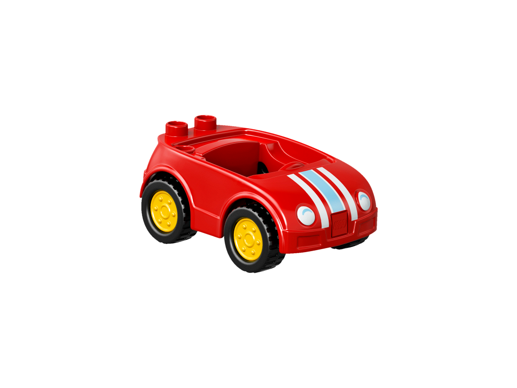 | 1 X Duplo Car Body with 2 Studs on Back and White Headlights with Shadow and Racing Stripes Pattern (fits over Car Base 2 x 4) | Red |   |  |