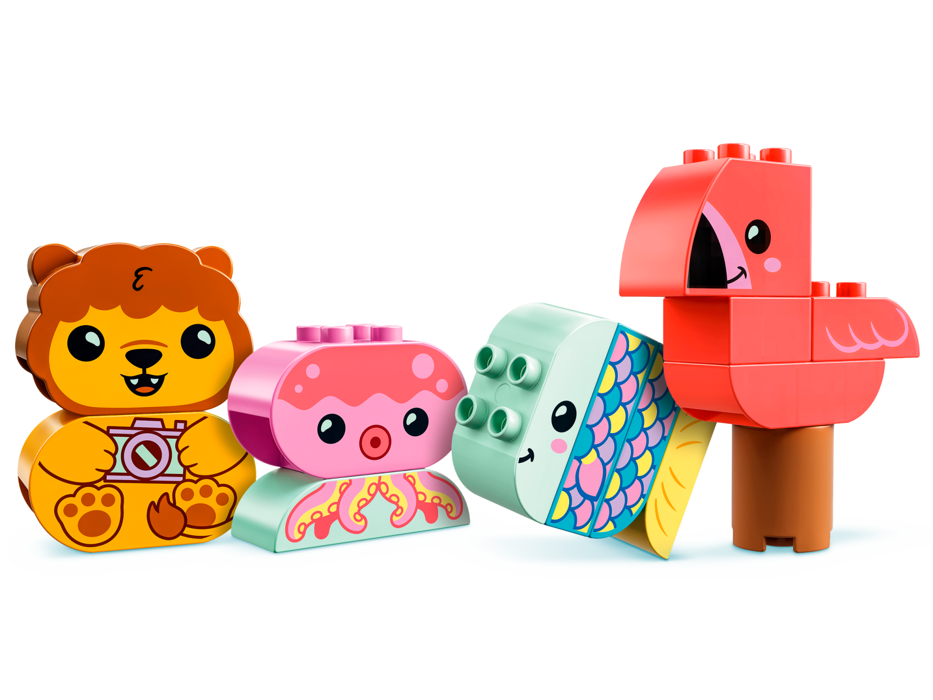 | 1 X Duplo, Brick 2 x 4 Slope Curved Double with Bright Light Yellow, Bright Pink, and Coral Octopus Tentacles Pattern | Light Aqua |   |  |