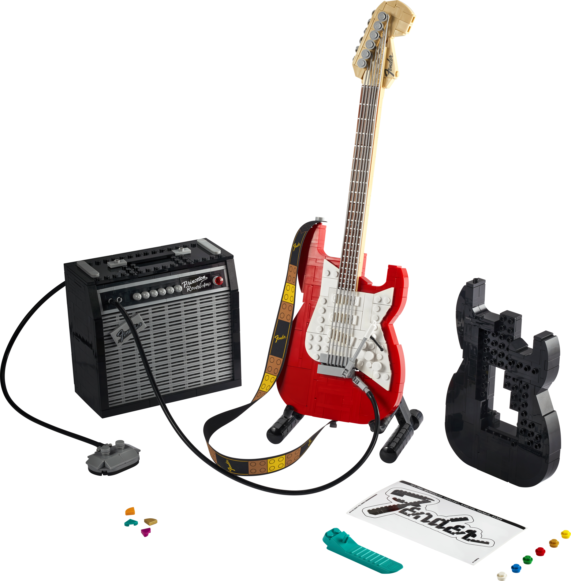 | 1 X Tile 2 x 3 with Black Fender Logo and 4 Phillips Screws Pattern (Sticker) - Set 21329 | Light Bluish Gray |   |  |