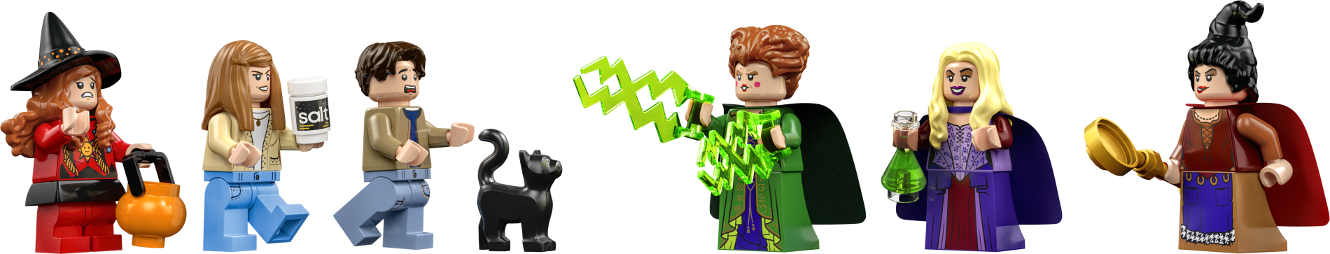 | 1 X Tile 1 x 2 with Groove with Dark Red Witch Minifigure, Text and Cat and Lime Stars and Swirls Pattern | Tan |   |  |