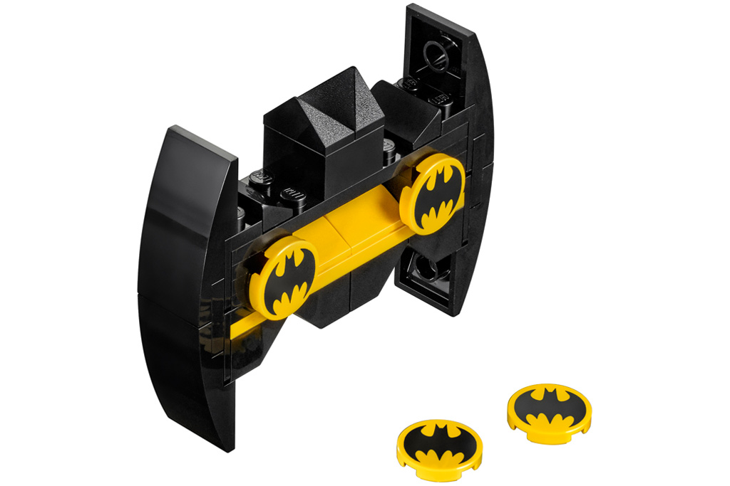 Tile, Round 2 x 2 with Bottom Stud Holder with Black Bat Batman Logo Pattern