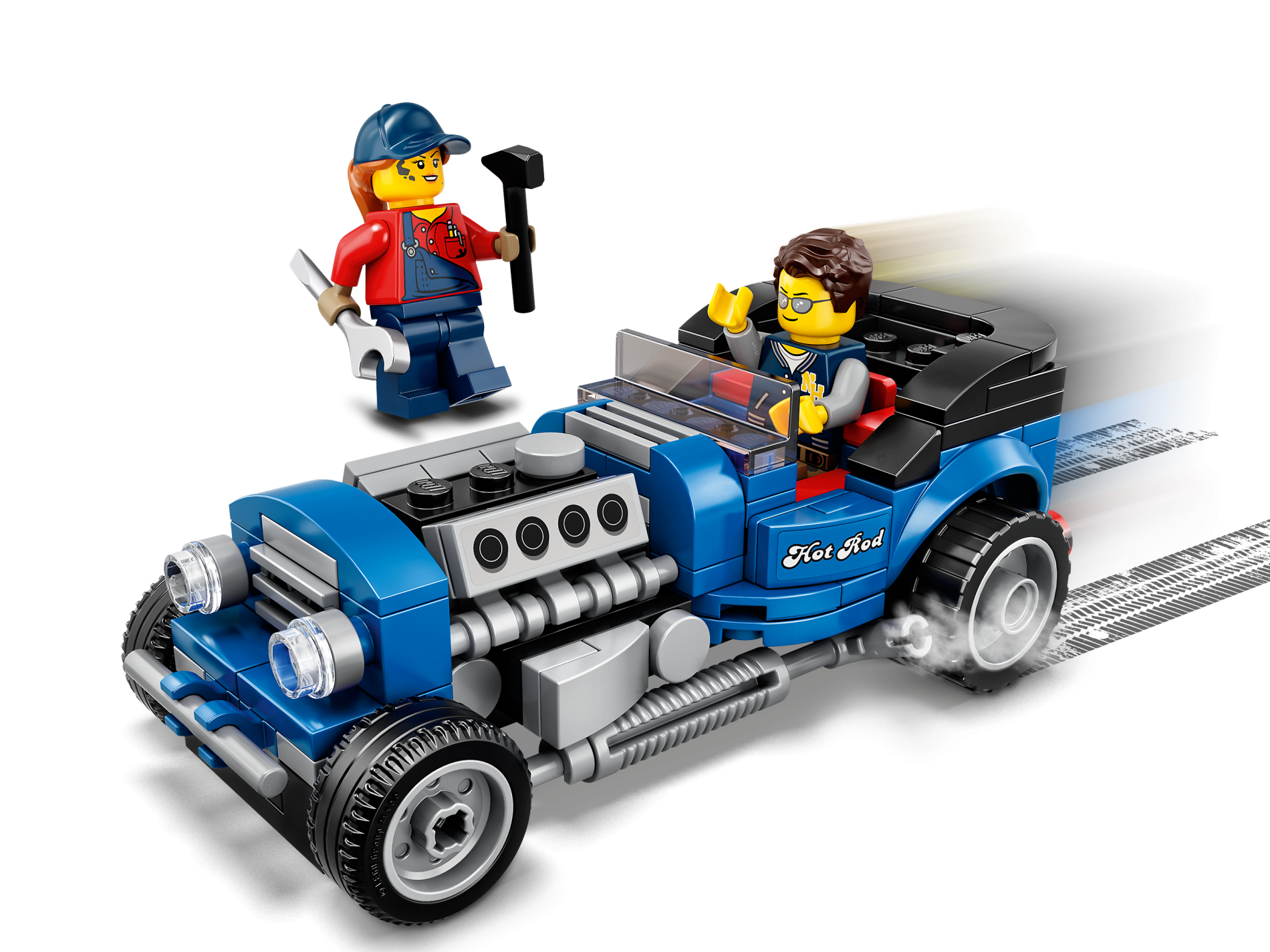 | 1 X Slope, Curved 2 x 1 with White 'Hot Rod' Pattern Model Left Side (Sticker) - Set 40409 | Blue |   |  |
