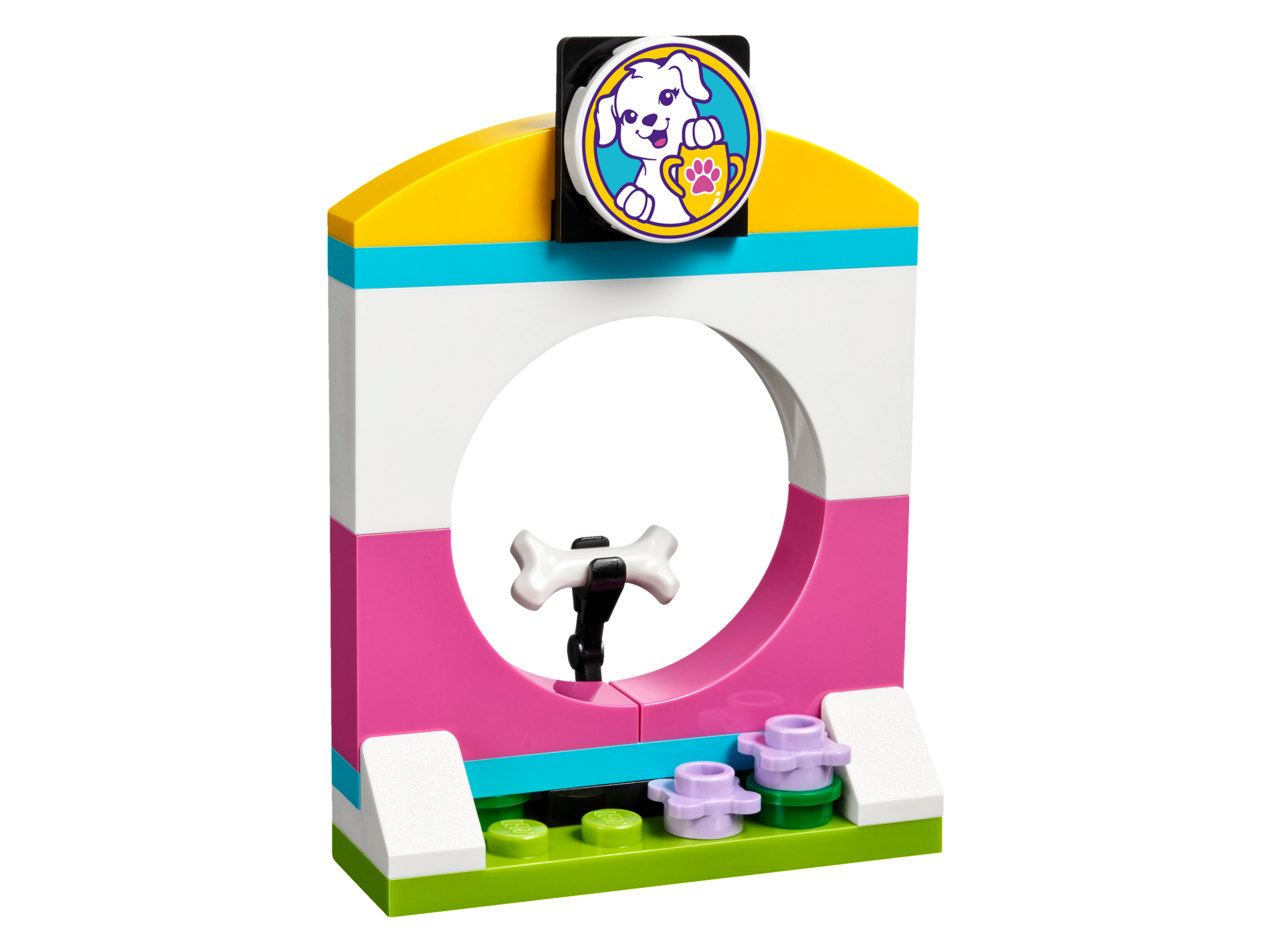 | 1 X Tile, Round 2 x 2 with Bottom Stud Holder with White Puppy Dog and Yellow Trophy with Dark Pink Paw Print on Medium Azure Background Pattern | White |   |  |