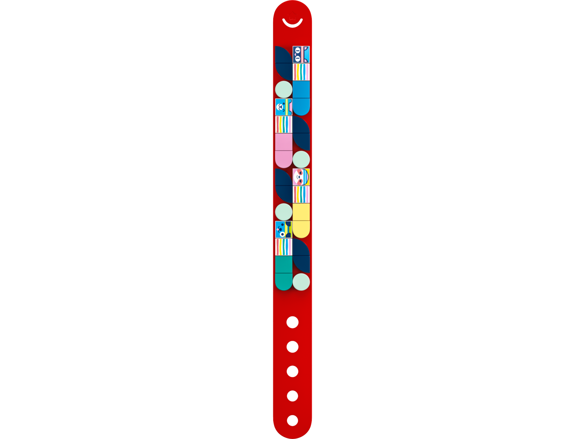 | 1 X Tile, Round 1 x 1 Quarter with Bright Pink, Dark Azure, Dark Turquoise, Yellow, and Coral Rainbow Stripes Pattern | White |   |  |