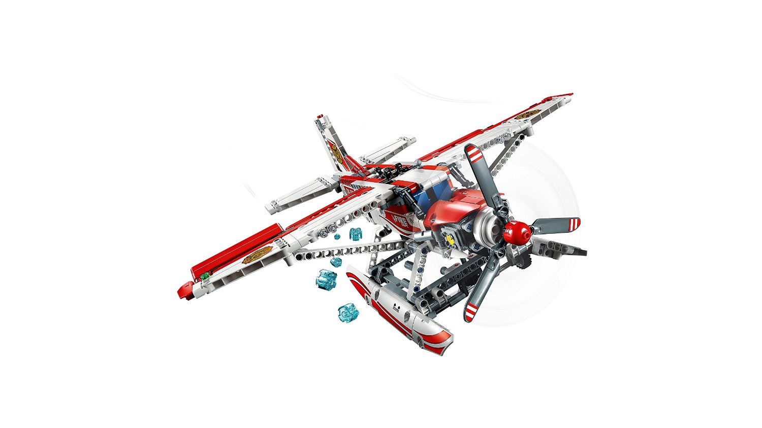 | 3 X Technic Rotor Blade Small with Axle and Pin Connector End with 3 Red Stripes and 2 White Stripes Pattern on Top (Sticker) - Set 42040 | Dark Bluish Gray |   |  |