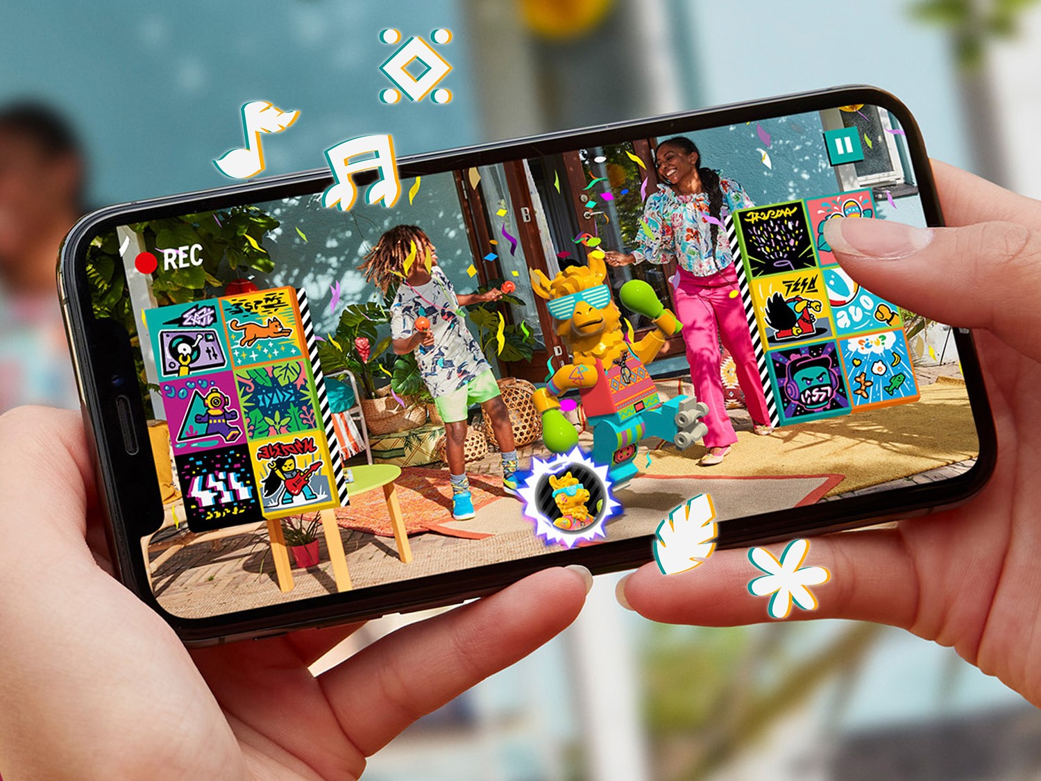 | 1 X Tile 2 x 2 with Groove with BeatBit Album Cover - Maracas and Green Leaf Pattern | Dark Turquoise |   |  |