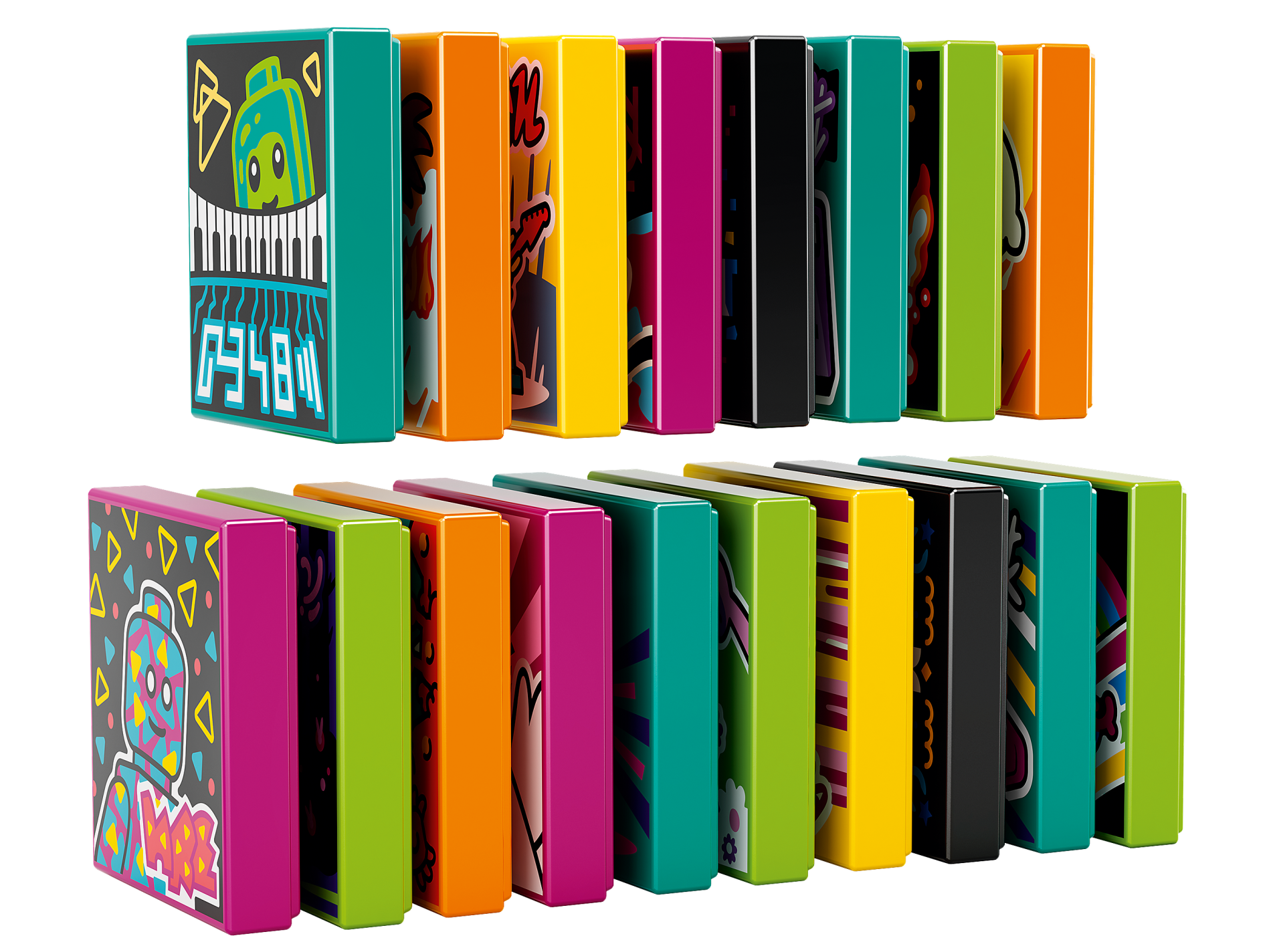 | 14 X Tile 2 x 2 with Groove with BeatBit Album Cover - Black Minifigure in Yellow and Purple Splotches Pattern | Black |   |  |