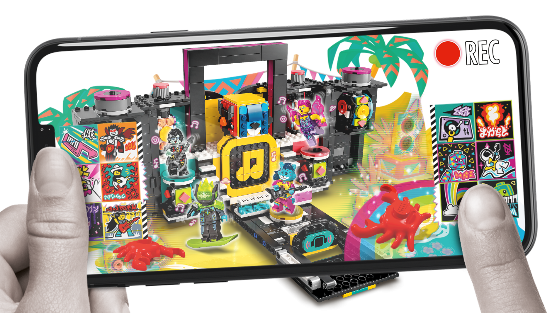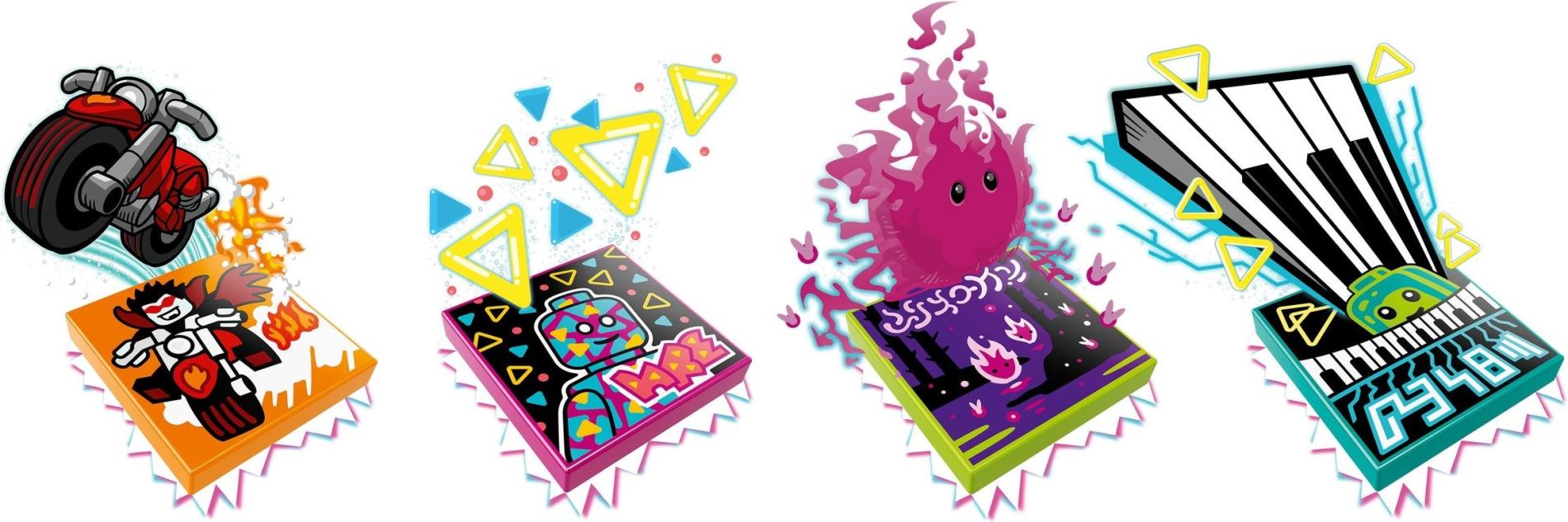 | 1 X Tile 2 x 2 with Groove with BeatBit Album Cover - Minifigure on Black Background with Medium Azure and Yellow Triangles Pattern | Magenta |   |  |