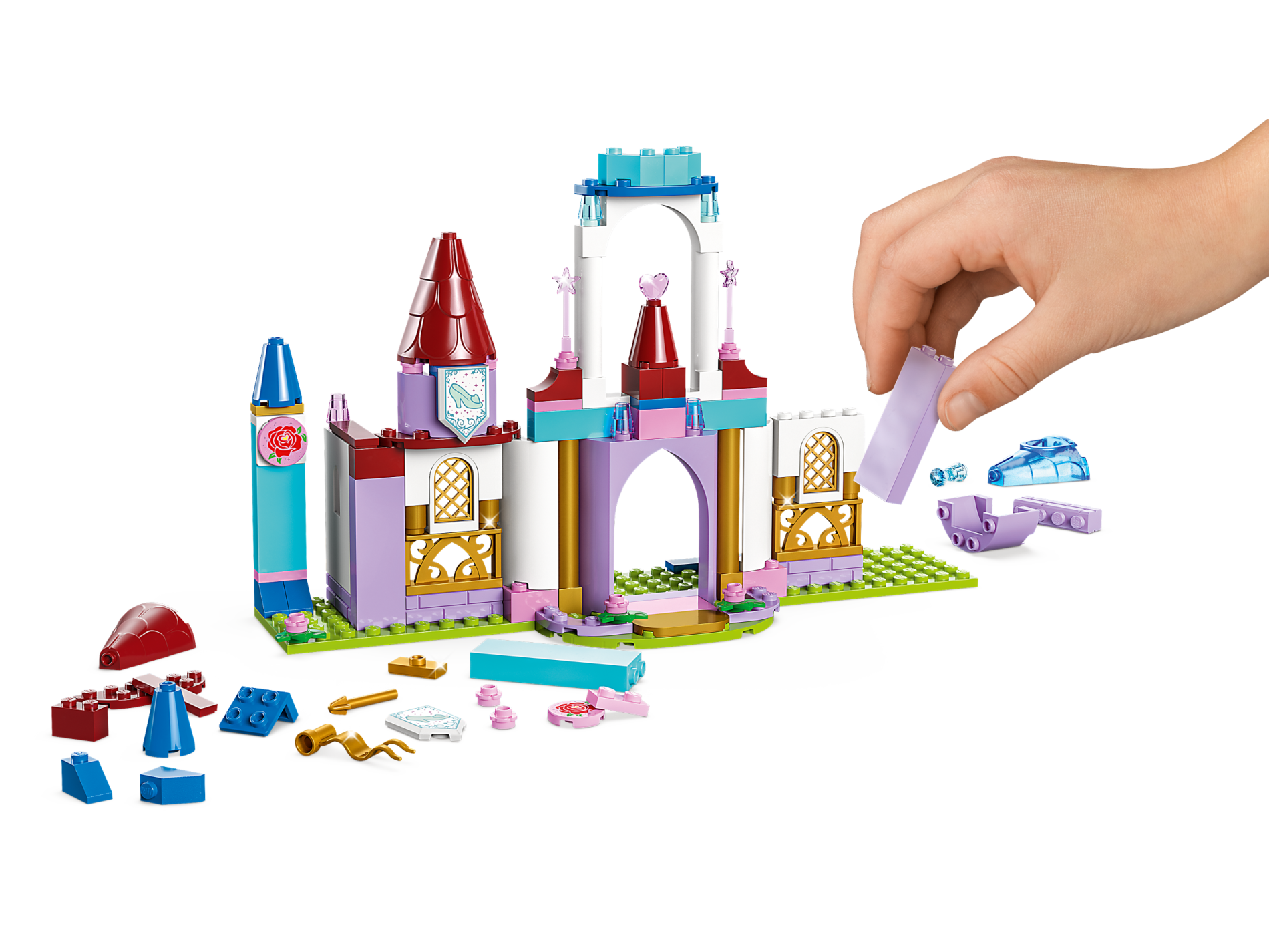 | 2 X Tile, Modified 2 x 3 Pentagonal with Light Aqua Shoe Cinderella Glass Slipper with Metallic Light Blue Border and Metallic Pink Sparkles Pattern | White |   |  |