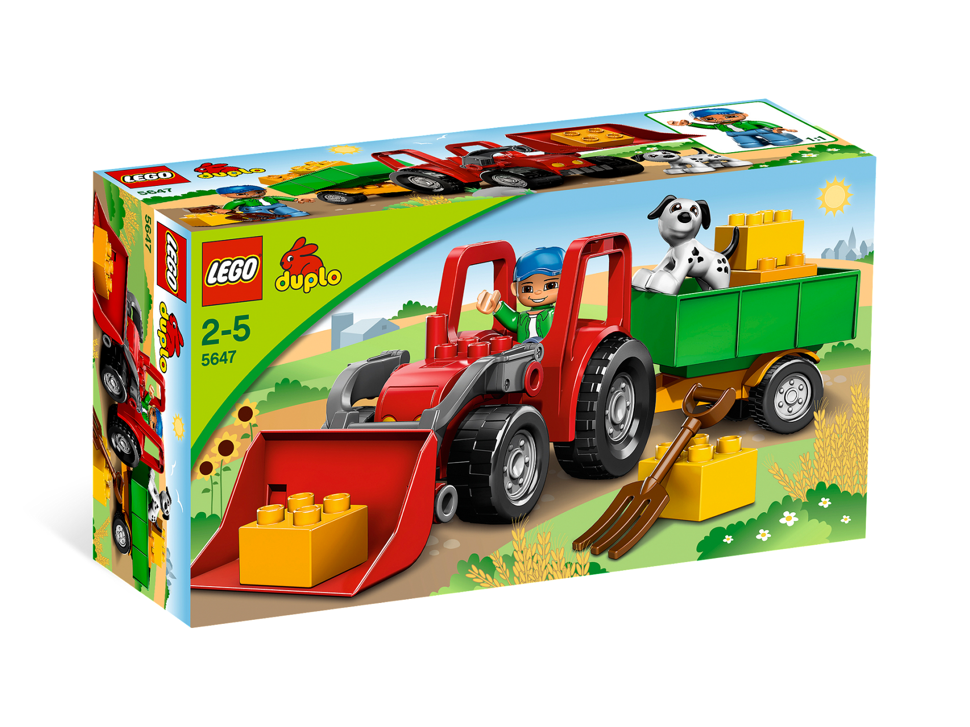 Duplo Farm Tractor New Style with 2 x 2 Studs on Hood and Yellow Headlights Pattern