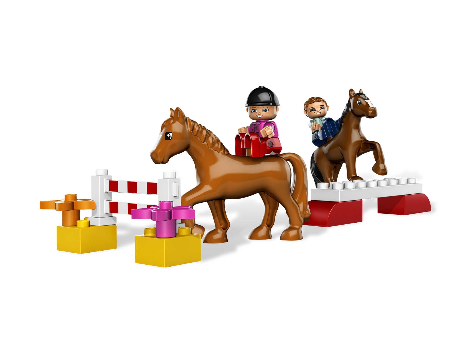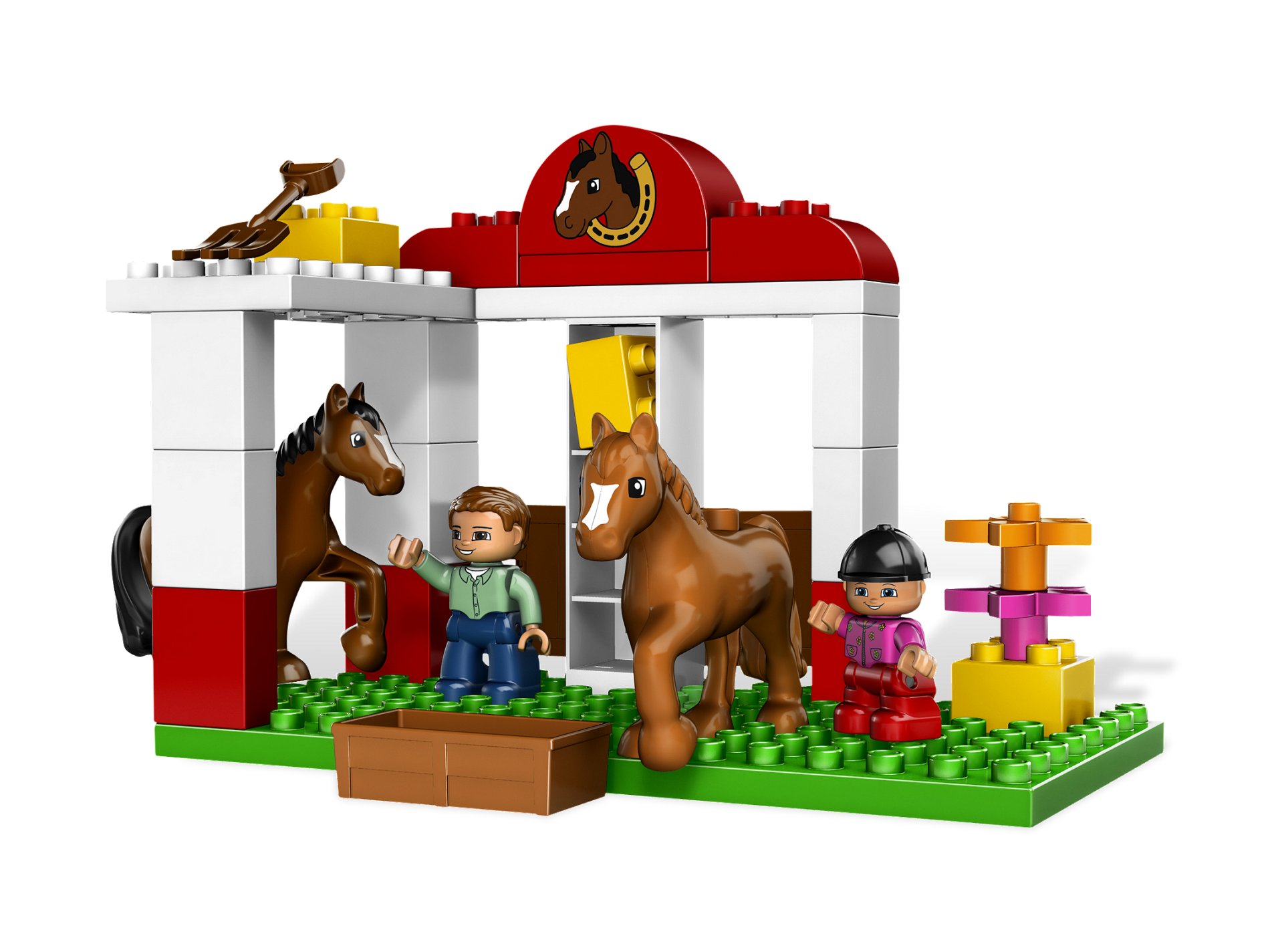 | 1 X Duplo, Brick 2 x 4 x 2 Curved Top with Horse Head in Horseshoe Pattern | Red |   |  |
