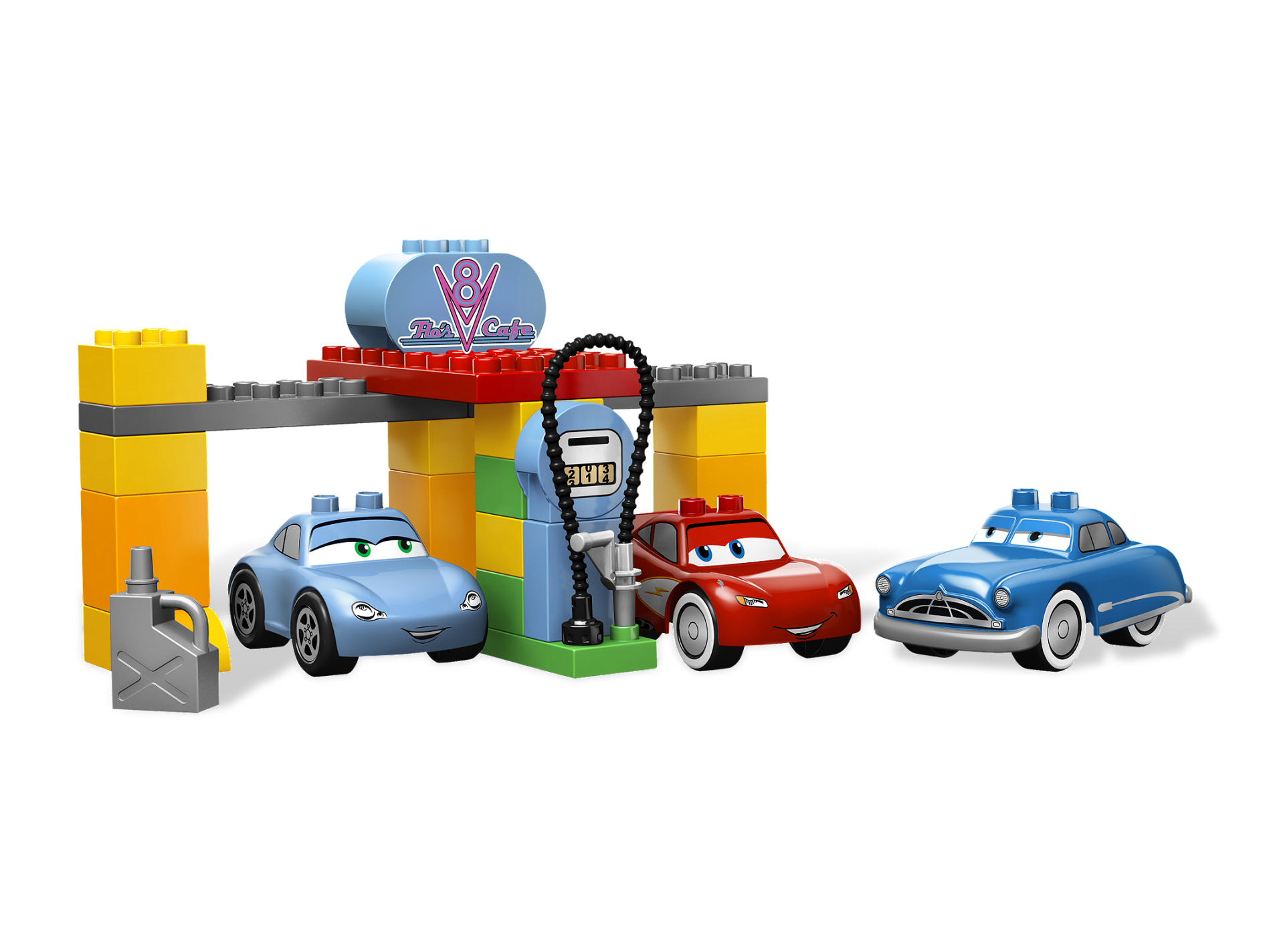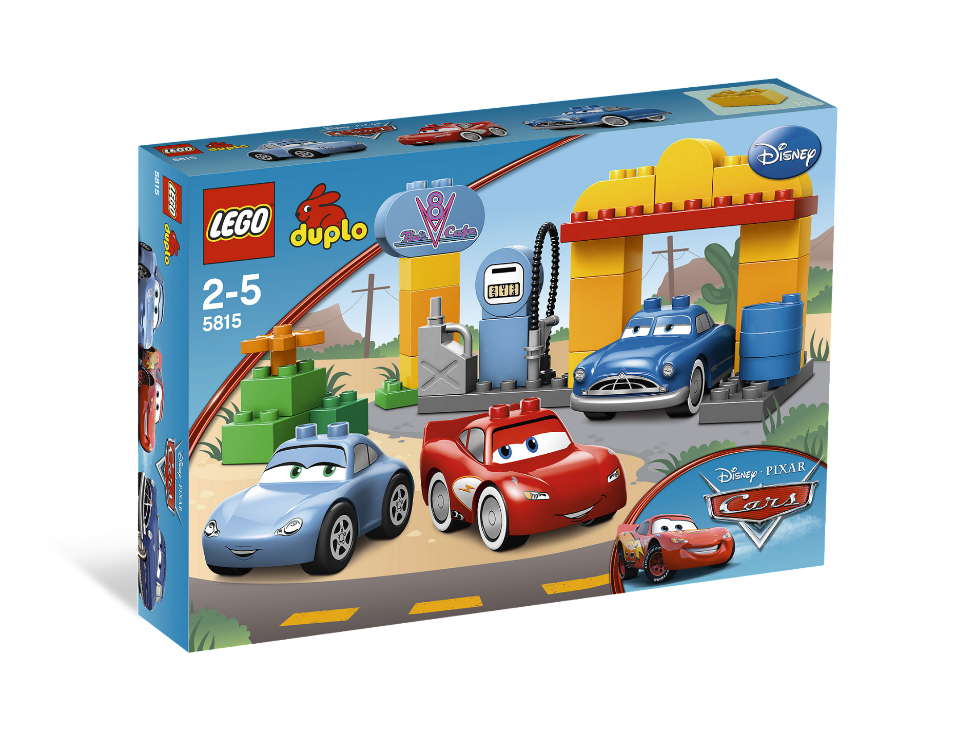 | 1 X Duplo, Brick 2 x 4 x 2 Rounded Ends with V8 and 'Flo's Cafe' Pattern | Medium Blue |   |  |