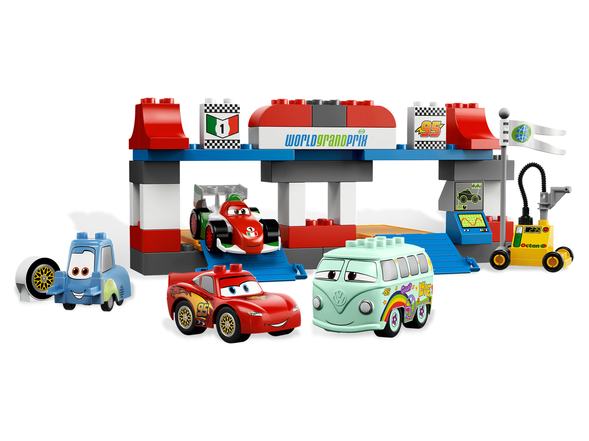 | 1 X Duplo, Brick 1 x 2 x 2 with Lightning Bolt, '95' and Checkered Flag Pattern | White |   |  |
