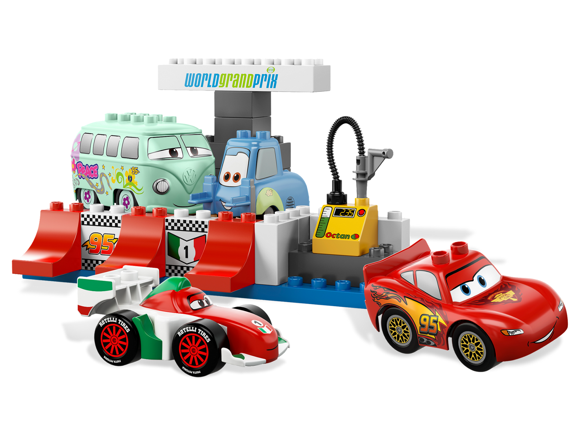 | 1 X Duplo, Brick 2 x 2 Slope 45 with Octan, Digits and Gas Gauge Pattern | Yellow |   |  |