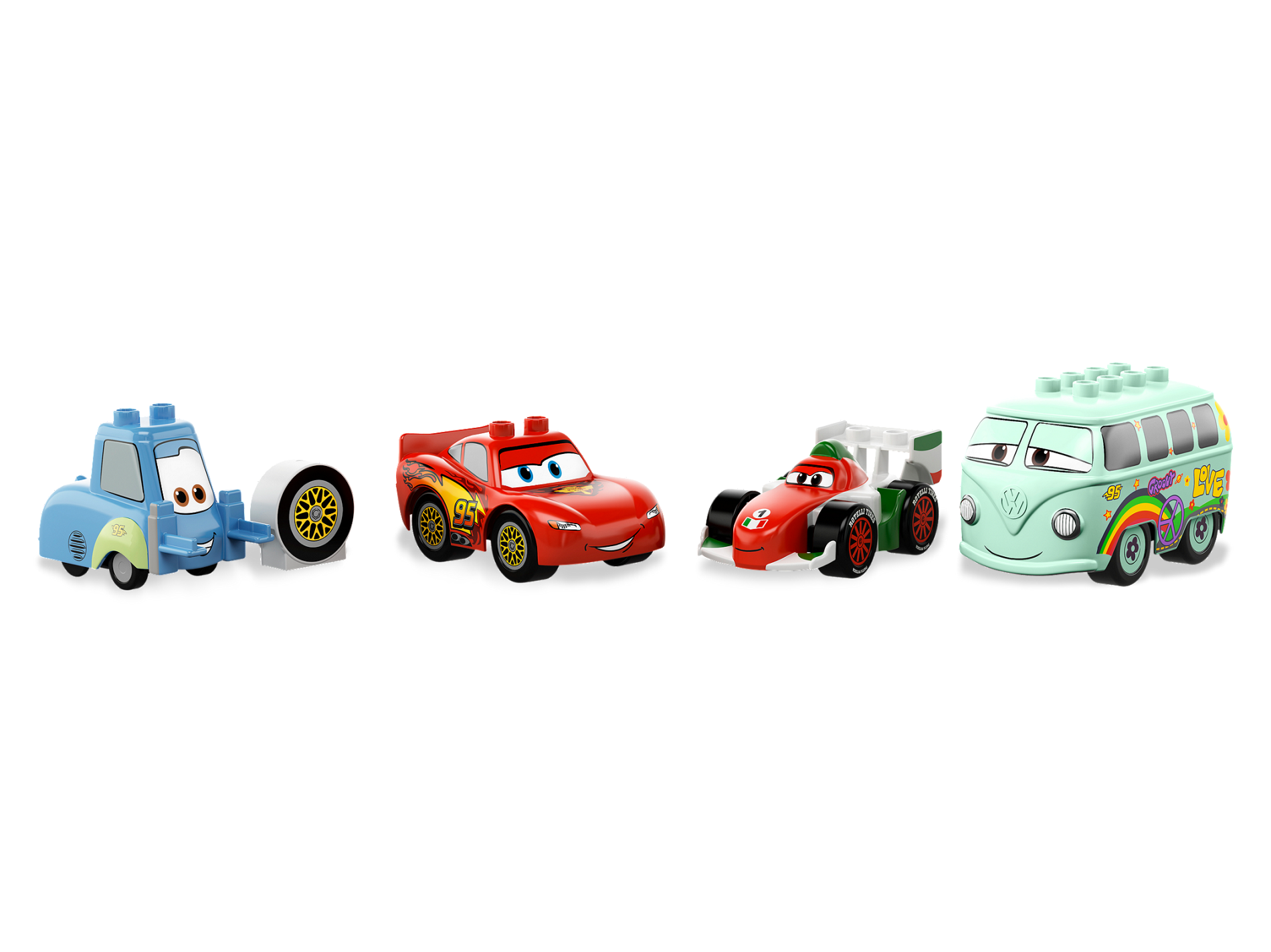 | 1 X Duplo Car Body 8 Top Studs with Cars Fillmore Pattern | Light Aqua |   |  |