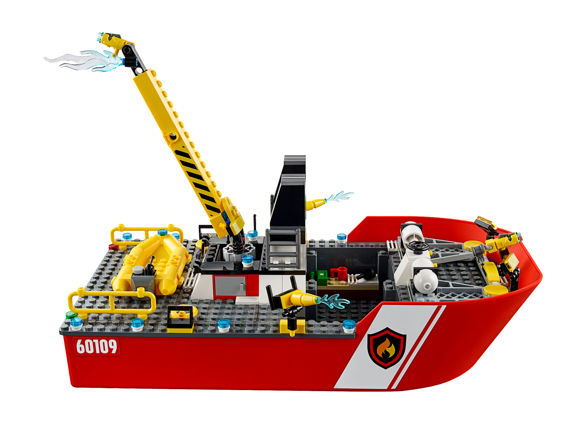 | 1 X Boat Hull Giant Bow 40 x 20 x 7 Complete Assembly, Top Color Dark Bluish Gray with Fire Logo and '60109' Pattern on Both Sides (Stickers) - Set 60109 | Red |   |  |