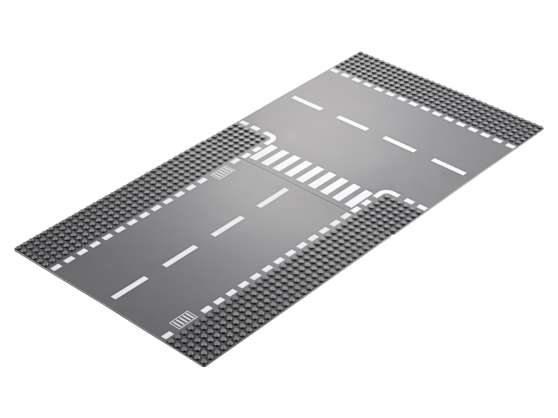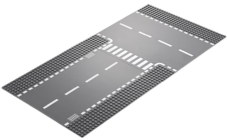 Baseplate, Road 32 x 32 6-Stud T Intersection with White Dashed Lines and Crosswalk Pattern