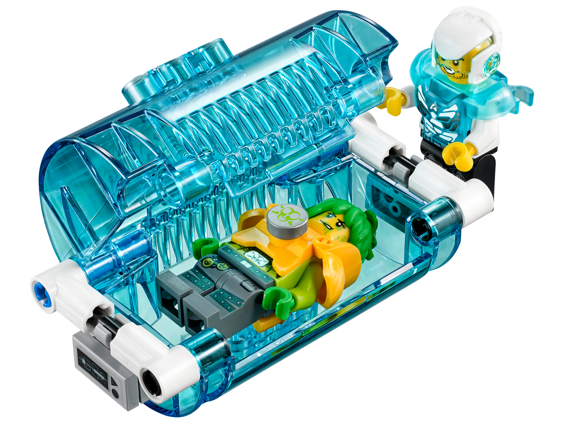 | 1 X Cylinder Half 3 x 5 x 8 with Pin Holes with Minifigure, Bar Code and Lock Pattern (Sticker) - Set 70169 | Trans-Light Blue |   |  |