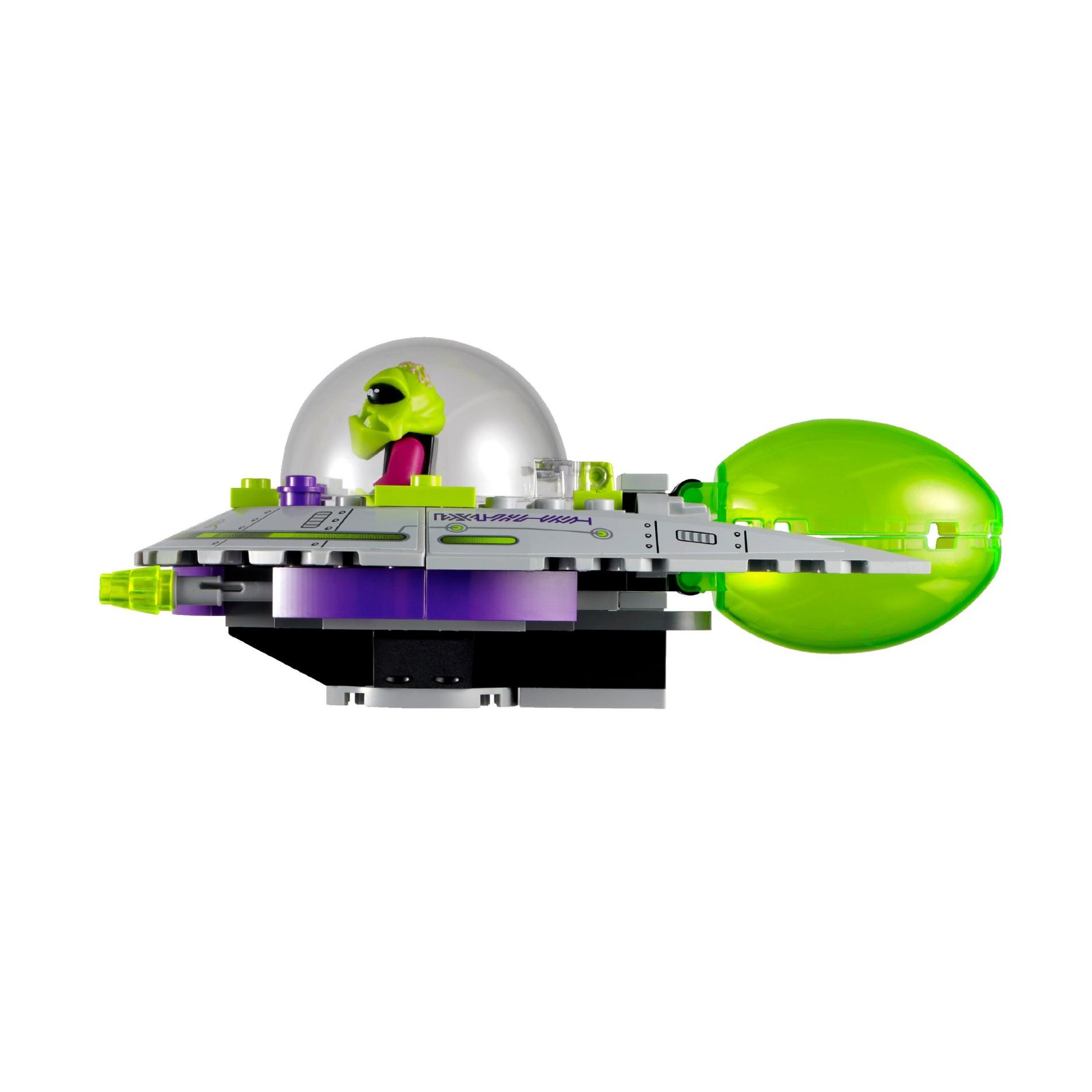 | 1 X Brick, Round Corner 6 x 6 with Slope 33 Edge, Facet Cutout with Alien Ship Pattern Model Right (Sticker) - Set 7051 | Light Bluish Gray |   |  |