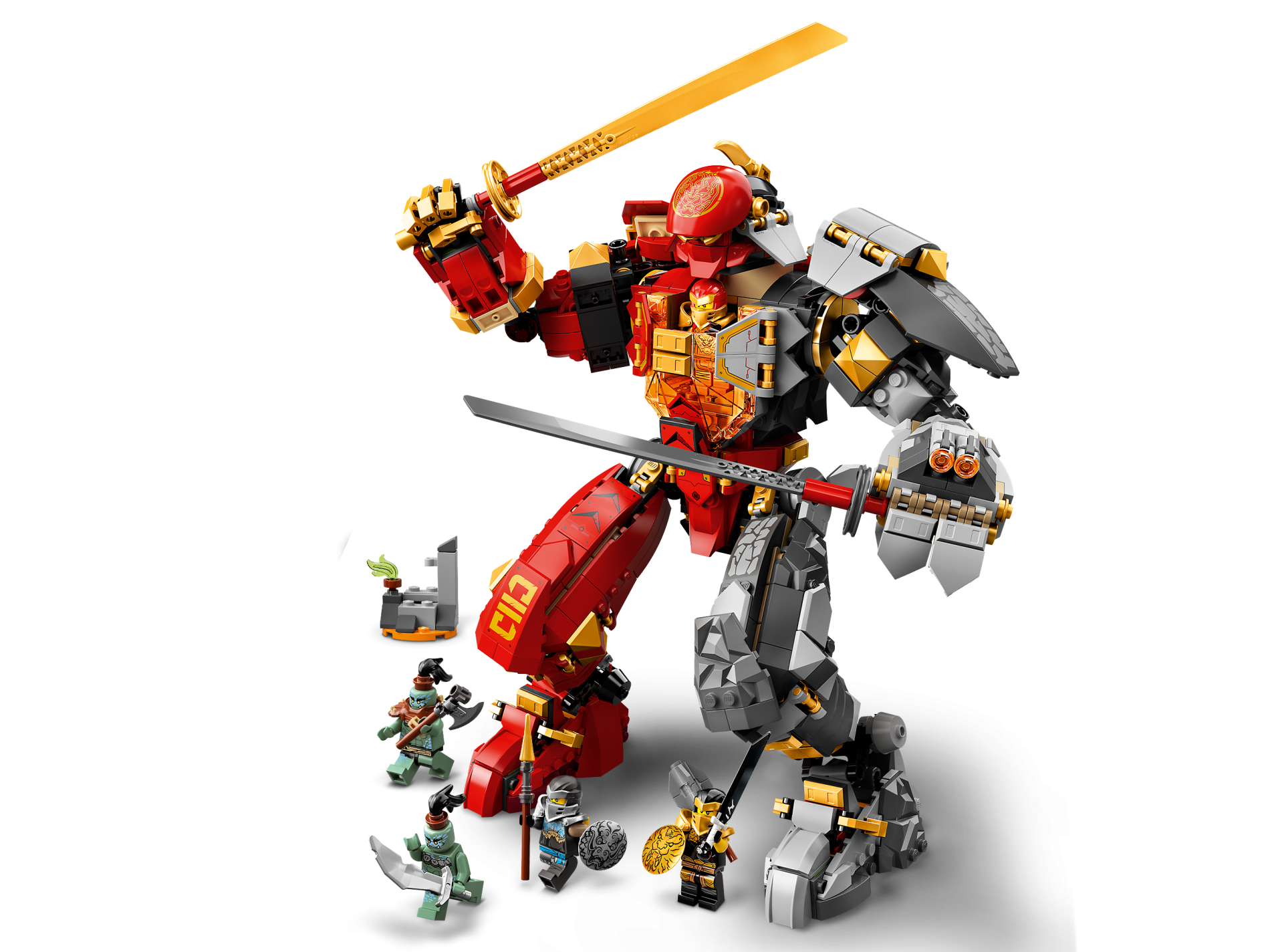 | 2 X Minifigure, Shield Round with Rounded Front with Black and Gold Ninjago Lion Head Pattern | Pearl Gold |   |  |