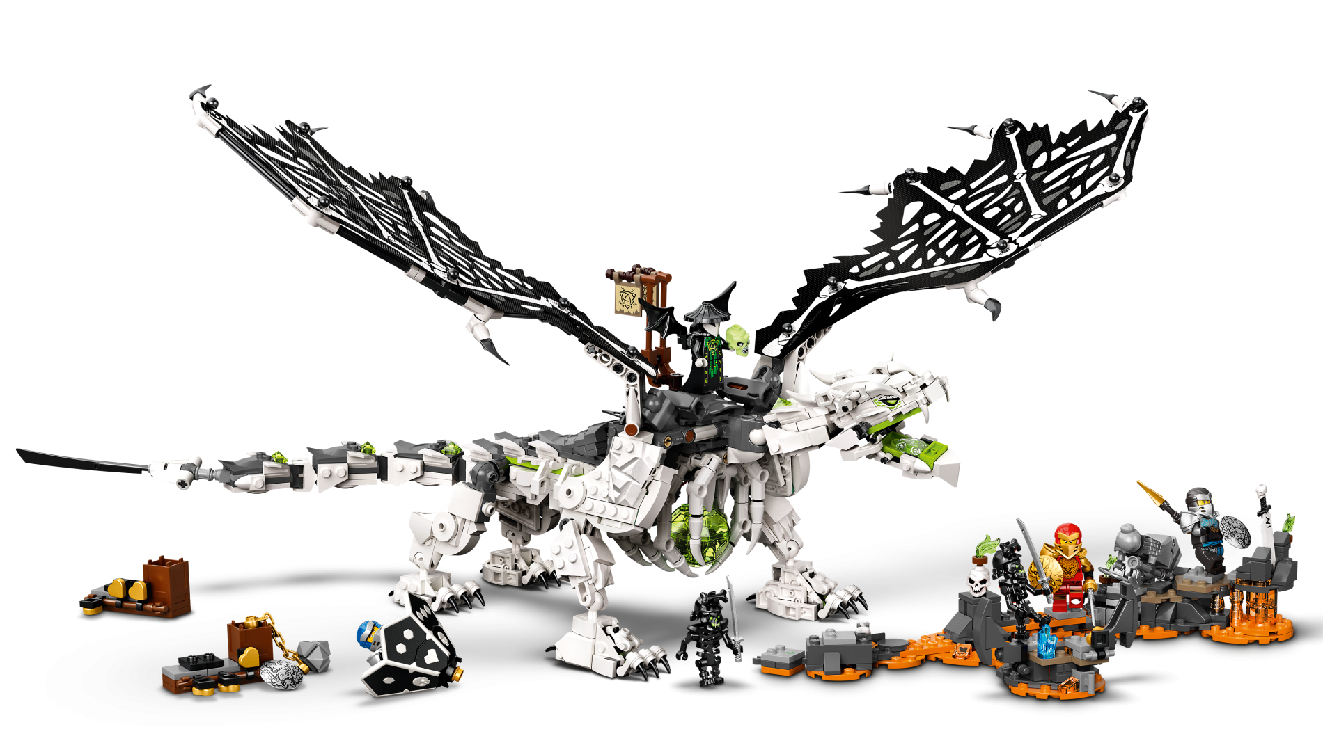 | 1 X Cloth Wing Dragon Right, Black and Tattered with White Bones Pattern | White |   |  |
