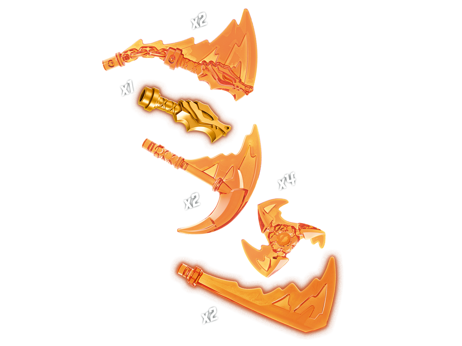 | 1 X Minifigure, Weapon Pack Sickles, Swords and Shuriken, 10 in Bag (Multipack) | Trans-Orange |   |  |