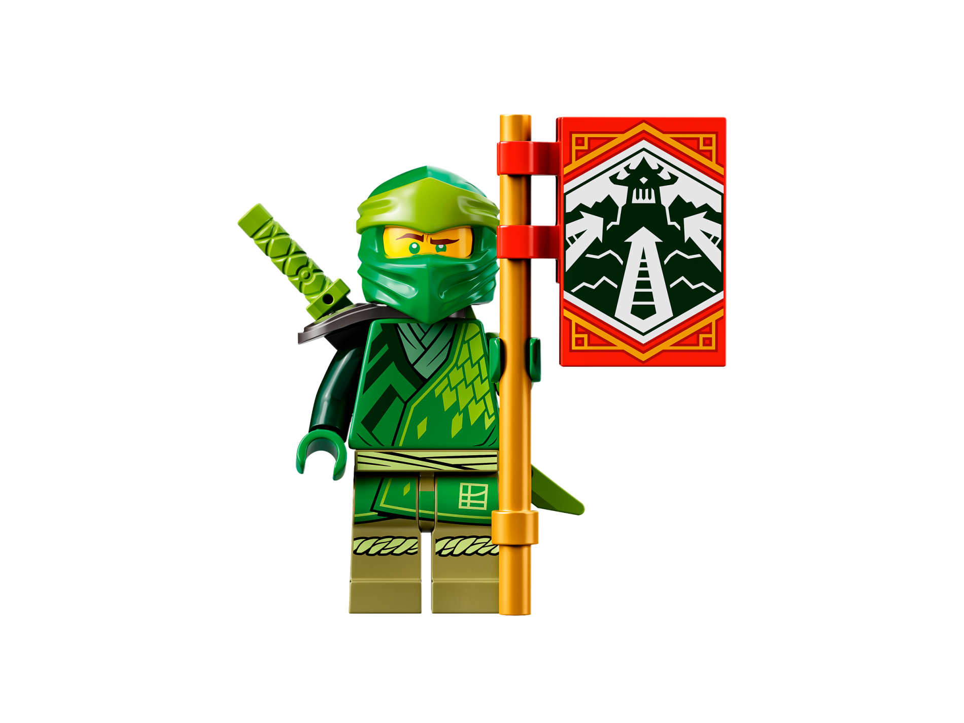 | 1 X Tile 2 x 3 with White Arrows Pointing at Dojo Temple on Dark Green Background with Gold Trim Pattern (Ninjago Adaptability Banner) | Red |   |  |