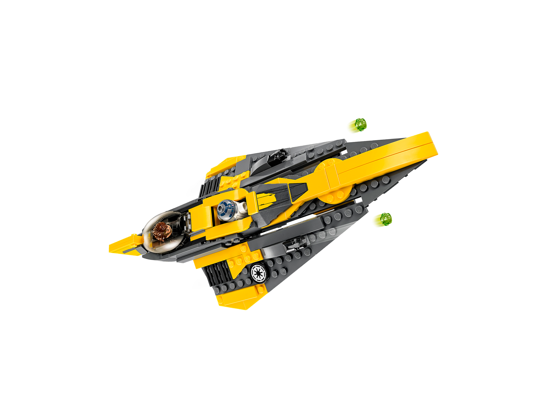 | 1 X Tile, Modified 4 x 4 with Dark Bluish Gray Jedi Starfighter Pattern Model Right Side (Sticker) - Set 75214 | Yellow |   |  |