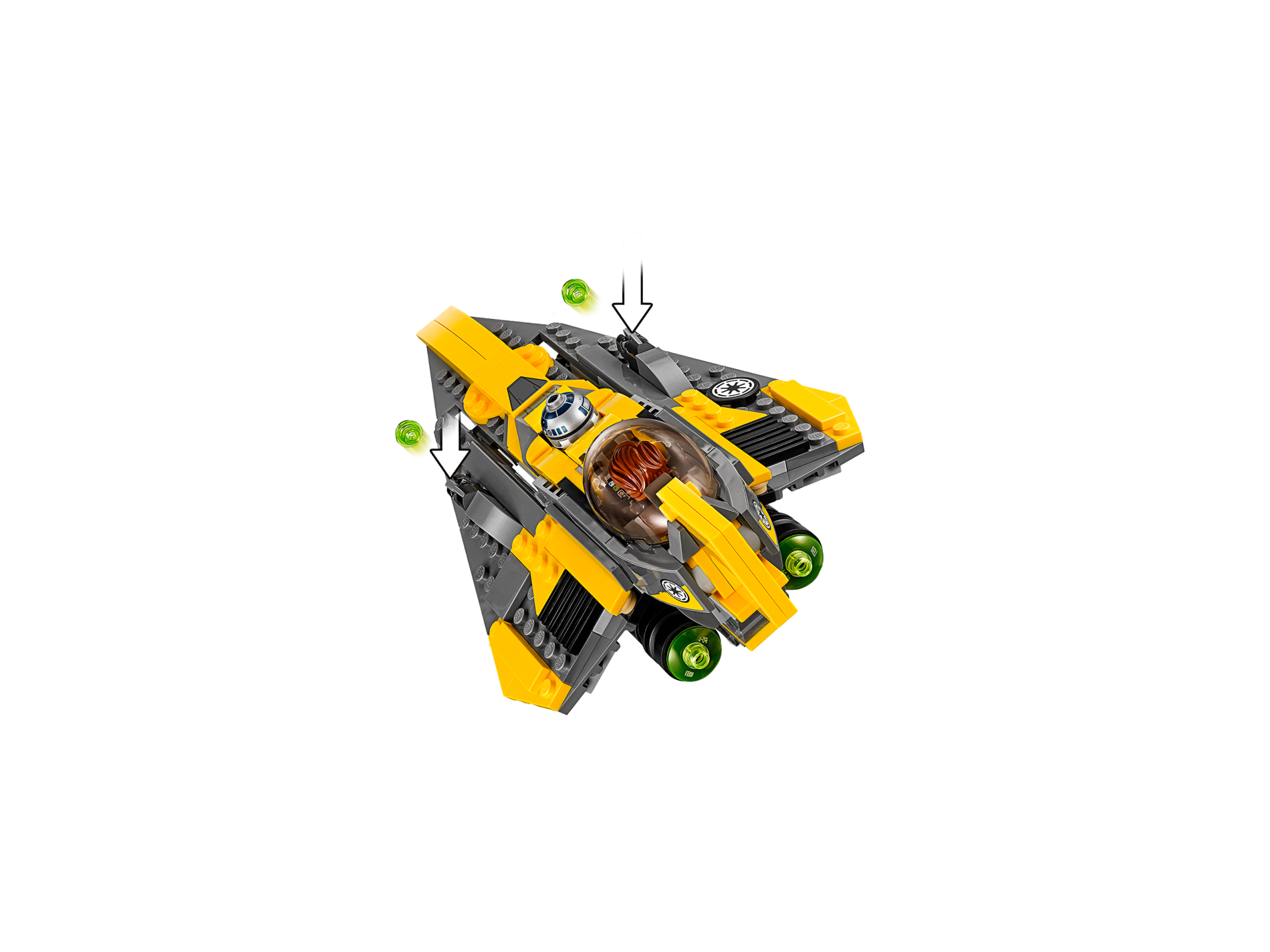 | 1 X Wedge 4 x 4 Triple with Stud Notches with Jedi Starfighter Hull Plates with Yellow Peeling Paint Pattern (Sticker) - Set 75214 | Dark Bluish Gray |   |  |