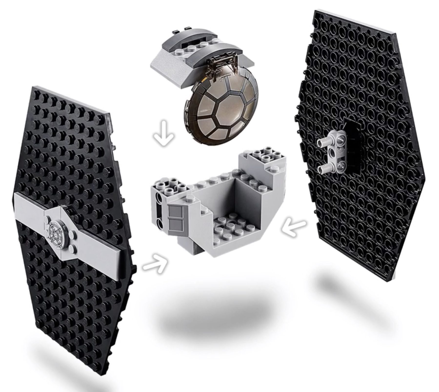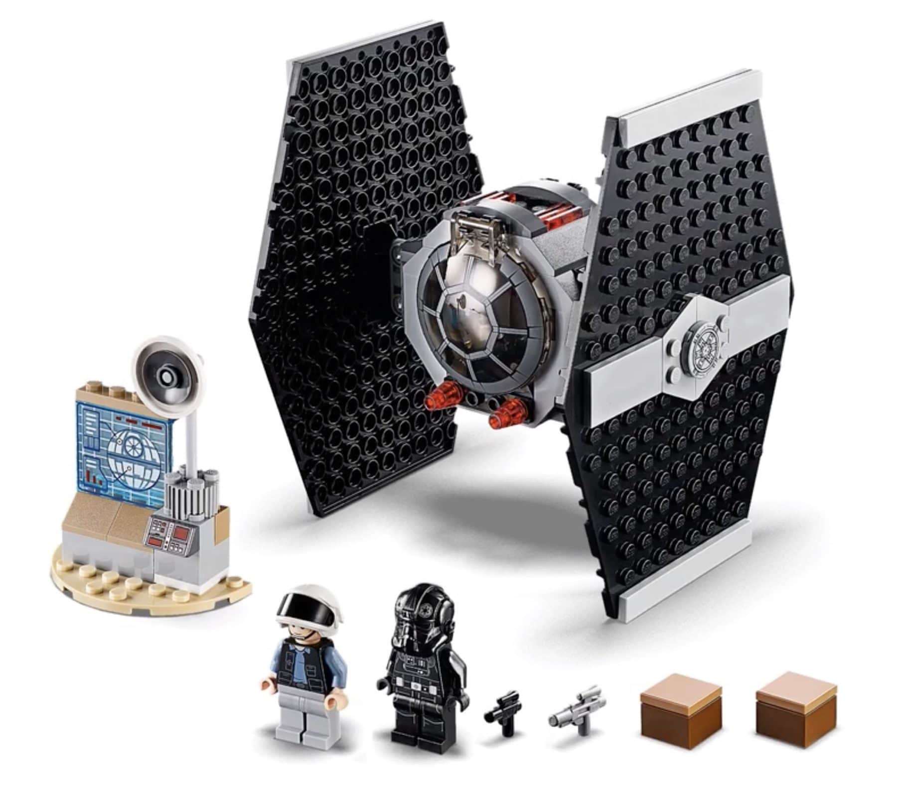 | 2 X Tile, Round 2 x 2 with Bottom Stud Holder with Black SW Tie Fighter Pattern | Light Bluish Gray |   |  |