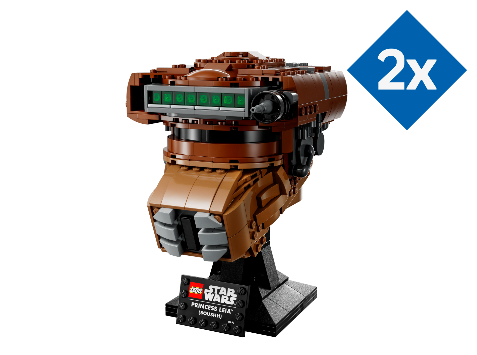 | 1 X Tile, Modified 4 x 6 with Studs on Edges with LEGO Star Wars Logo and White 'PRINCESS LEIA (BOUSHH)' Pattern | Black |   |  |