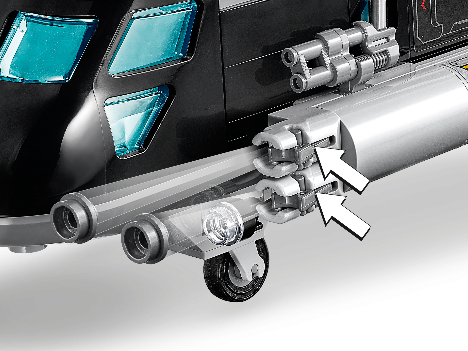| 4 X Projectile Launcher, 1 x 2 Mini Blaster / Shooter with Dark Bluish Gray Trigger (15403 / 15392) | Light Bluish Gray |   |  |
