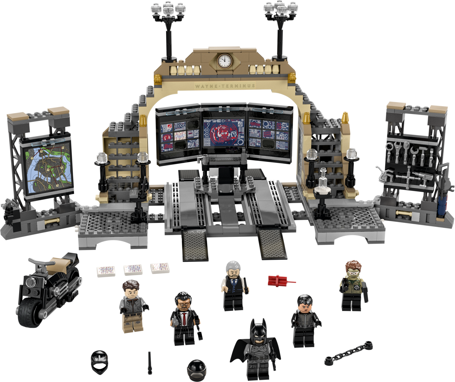| 1 X Panel 1 x 6 x 5 with Monitor Screens with Red Minifigure, Motorcycle and Question Marks Pattern (Sticker) - Set 76183 | Black |   |  |