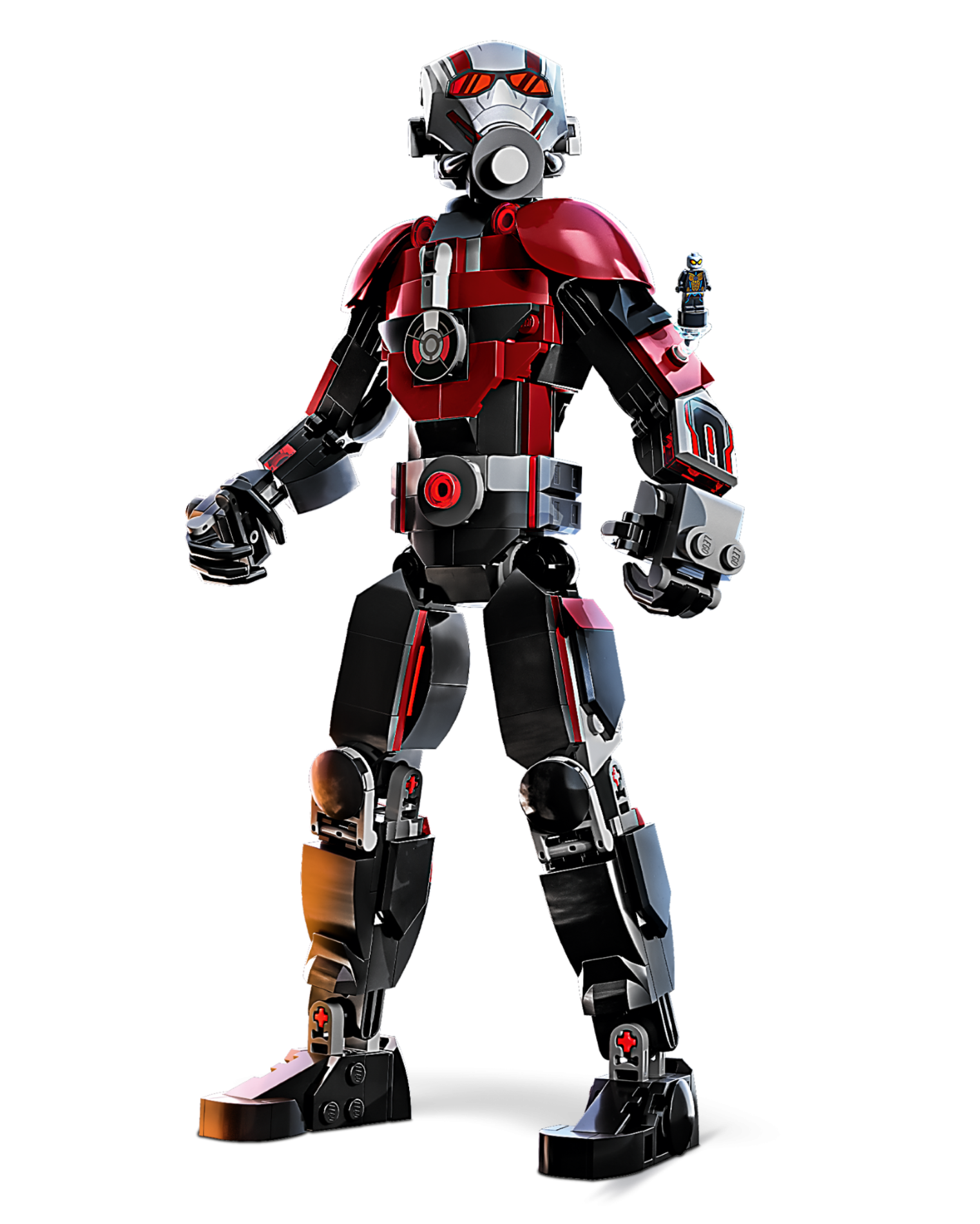 | 1 X Large Figure Armor, Smooth with 2 x 2 Round Brick Attachment with Red and Dark Red Ant-Man Mask and Glasses Pattern | Flat Silver |   |  |