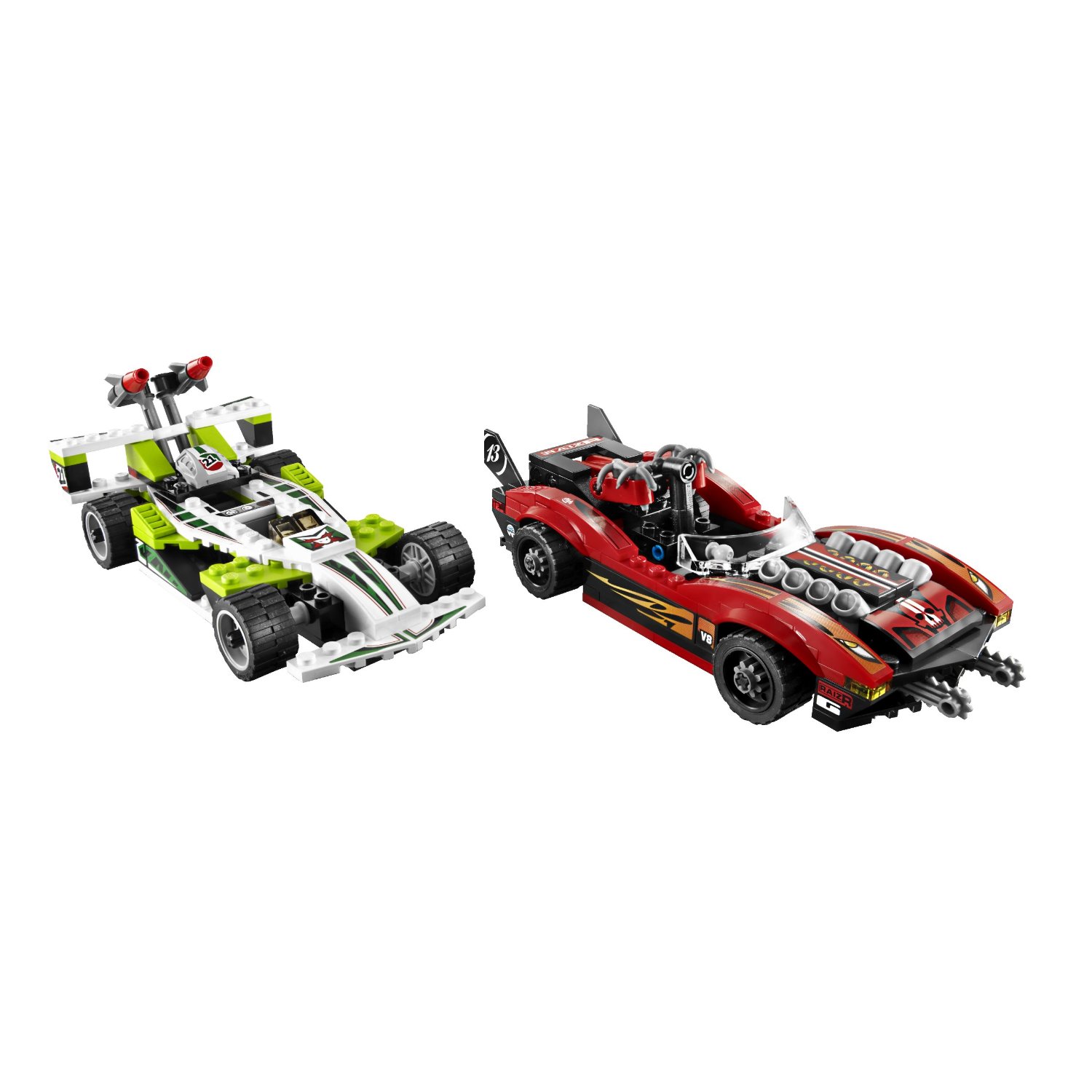 | 1 X Brick 1 x 8 with 'V8' and Orange Slope Pattern on Both Ends (Stickers) - Set 8898 | Black |   |  |