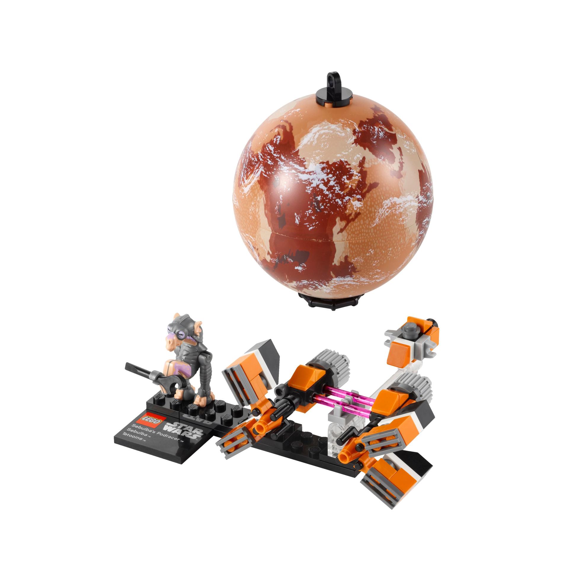 | 1 X Tile, Modified 4 x 4 with Studs on Edge with Lego Star Wars Logo and 'Sebulba's Podracer Sebulba Tatooine' Pattern - Set 9675 | Black |   |  |