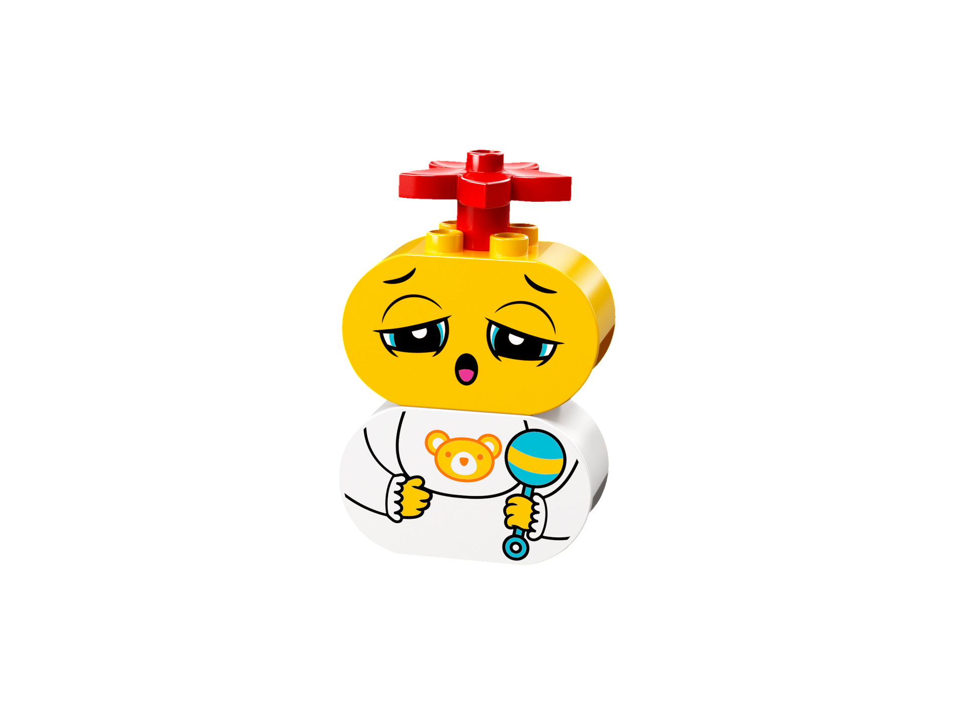 | 1 X Duplo, Brick 2 x 4 x 2 Rounded Ends with Teddy Bear Bib and Medium Blue Rattle Pattern | White |   |  |
